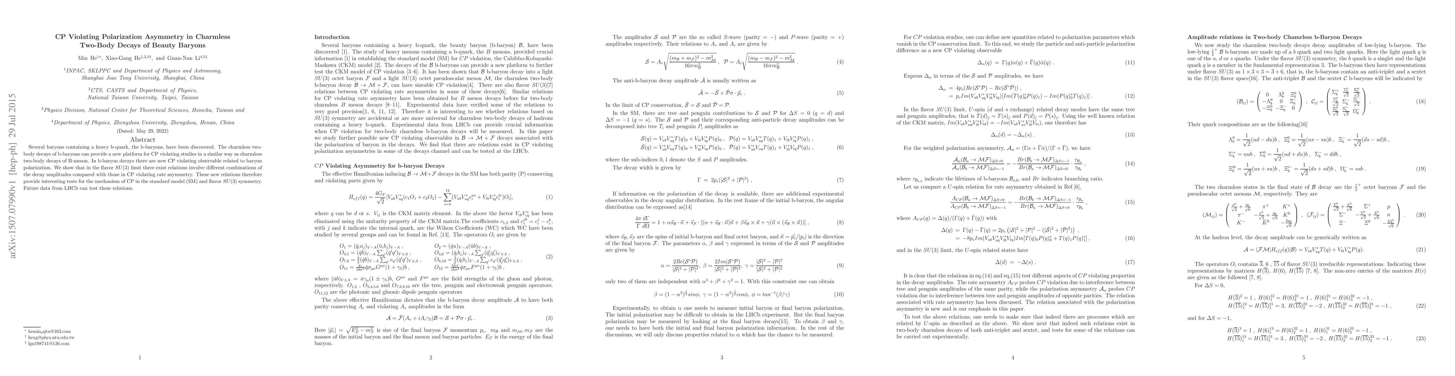 Several baryons containing a heavy b-quark, the b-baryons, have been discovered. The charmless two-body decays of b-baryons can provide a new platform for CP violating studies in a similar way as charmless two-body decays of B-meson. In b-baryon decays there are new CP violating observable related to baryon polarization. We show that in the flavor $SU(3)$ limit there exist relations involve different combinations of the decay amplitudes compared with those in CP violating rate asymmetry. These new relations therefore provide interesting tests for the mechanism of CP in the standard model (SM) and flavor $SU(3)$ symmetry. Future data from LHCb can test these relations.
