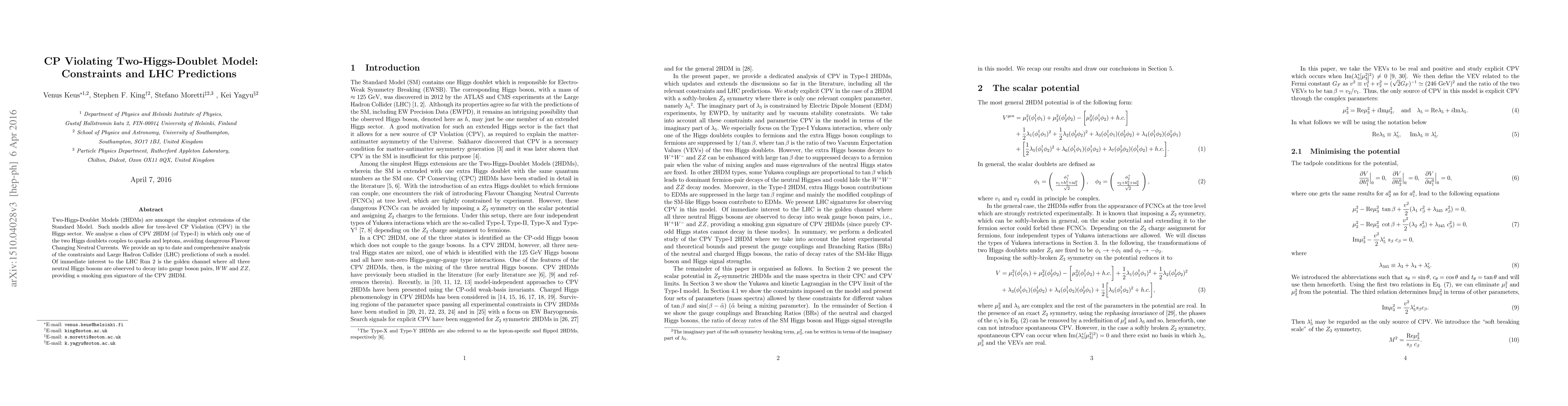 Two-Higgs-Doublet Models (2HDMs) are amongst the simplest extensions of the Standard Model. Such models allow for tree-level CP Violation (CPV) in the Higgs sector. We analyse a class of CPV 2HDM (of Type-I) in which only one of the two Higgs doublets couples to quarks and leptons, avoiding dangerous Flavour Changing Neutral Currents. We provide an up to date and comprehensive analysis of the constraints and Large Hadron Collider (LHC) predictions of such a model. Of immediate interest to the LHC Run 2 is the golden channel where all three neutral Higgs bosons are observed to decay into gauge boson pairs, $WW$ and $ZZ$, providing a smoking gun signature of the CPV 2HDM.
