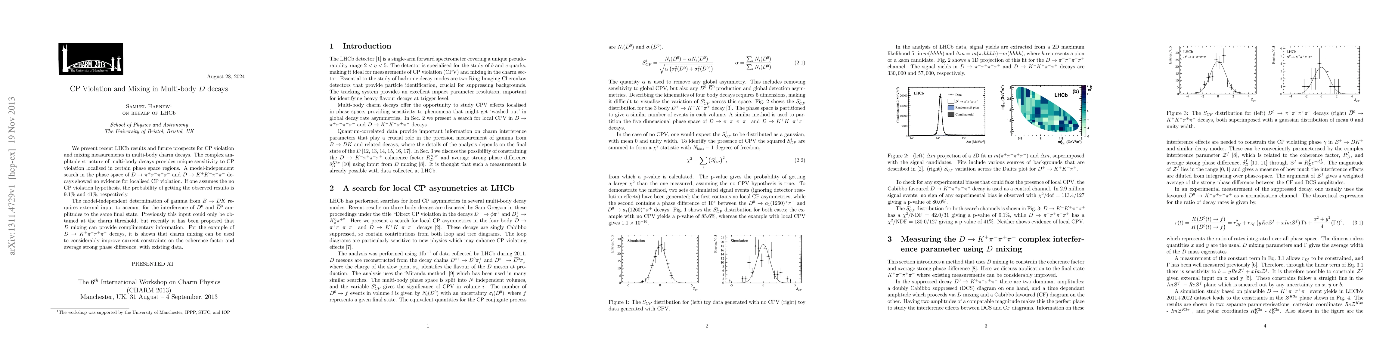 This paper discusses LHCb's findings on CP violation and mixing in multi-body charm decays, reporting no evidence for localized CP violation in specific decay modes. It also explores how charm mixing can enhance constraints on parameters in B->DK decays, using D->K+pi-pi+pi- as an example.