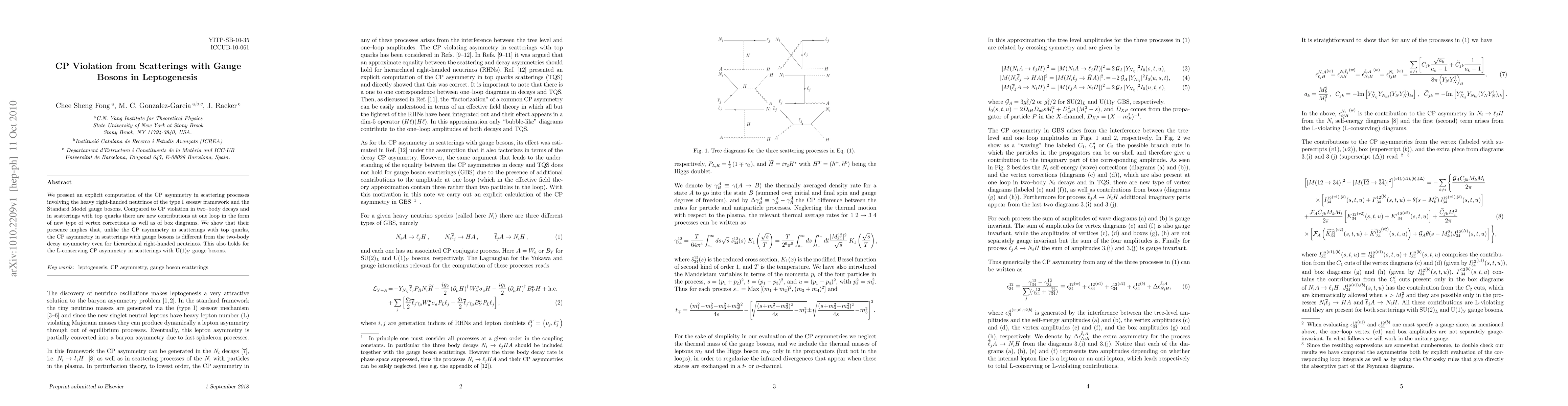 This paper computes CP asymmetry in scattering processes involving heavy right-handed neutrinos and Standard Model gauge bosons, revealing new one-loop contributions from vertex corrections and box diagrams. These findings show that CP asymmetry in gauge boson scattering differs from that in two-body decay, even for hierarchical neutrinos.