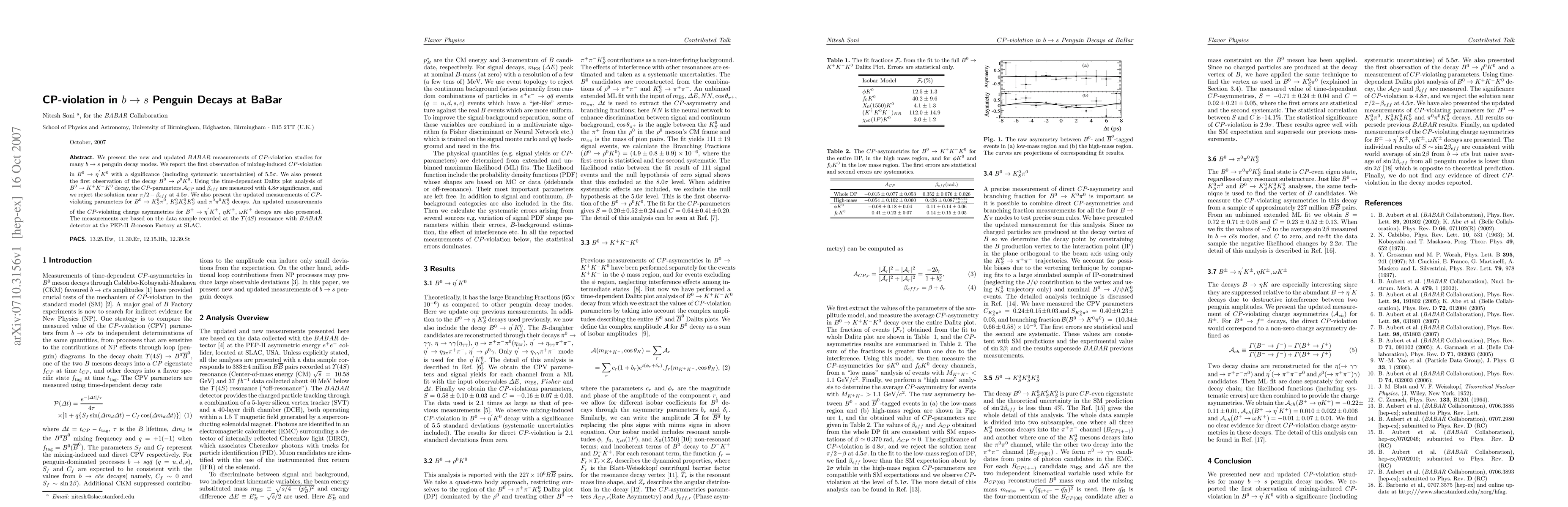 The BaBar collaboration reports new findings on CP-violation in $b \to s$ penguin decays, including the first observation of mixing-induced CP-violation in $B^0 \to \eta ^{'} K^0$ and $B^0 \to \rho ^0 K^0$ decay. Updated measurements of CP-violating parameters and charge asymmetries for various decay modes are also presented.