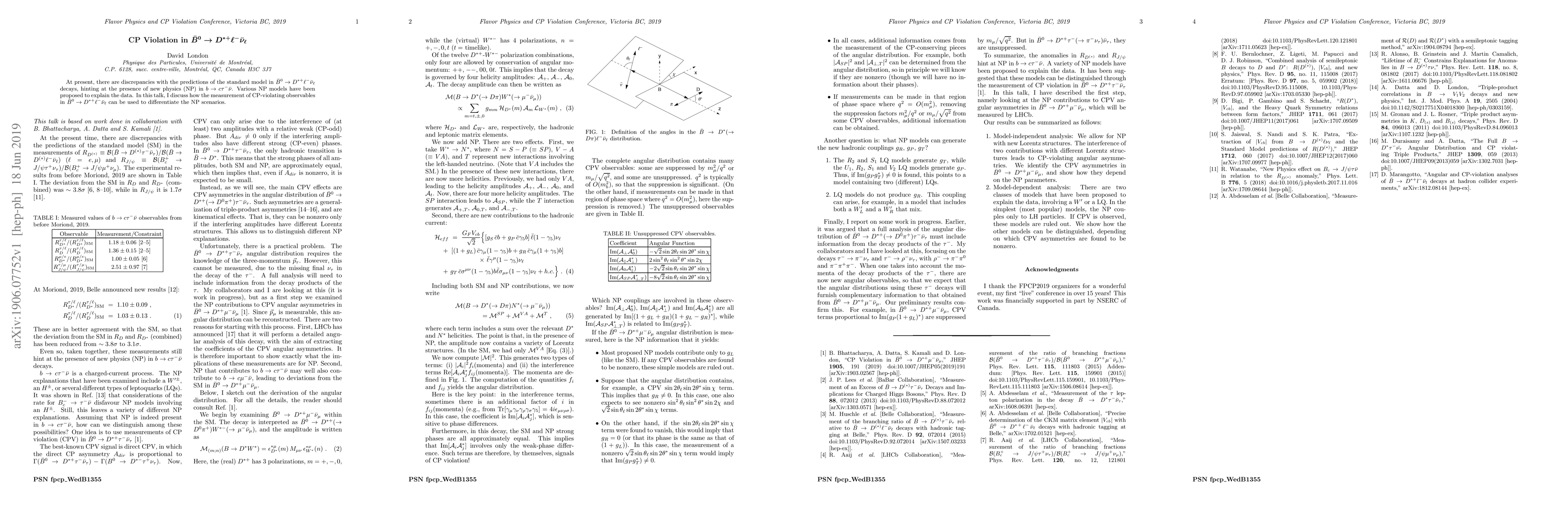 This paper investigates discrepancies in ${\bar B}^0 \to D^{*+} \ell^- {\bar\nu}_\ell$ decays that suggest new physics beyond the standard model. It explores how measurements of CP-violating observables can help distinguish between various proposed new physics models.