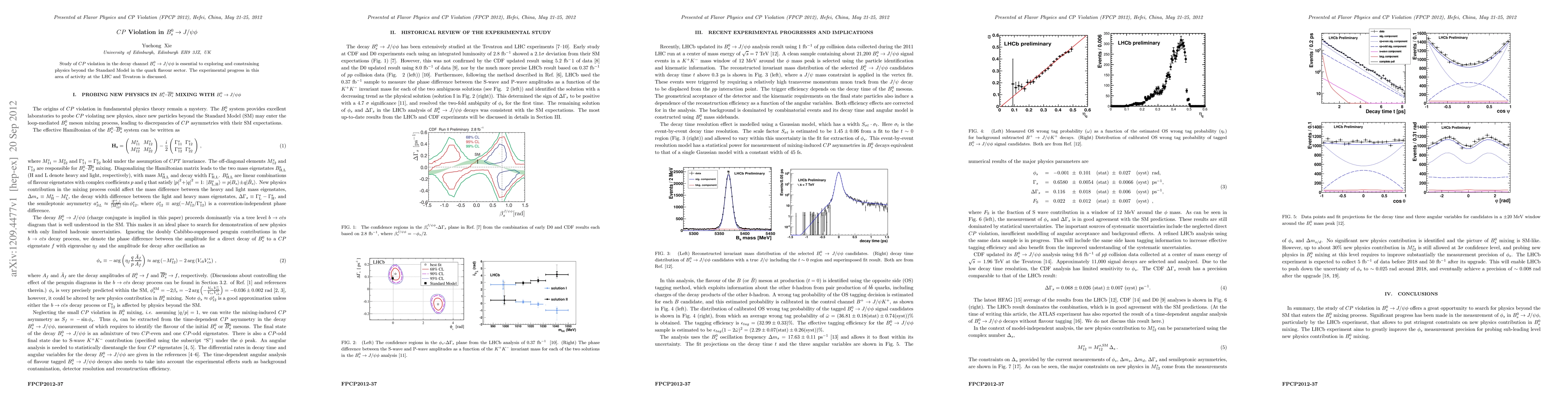 Summary: This study investigates CP violation in the Bs meson decay to J/psi phi, aiming to probe physics beyond the Standard Model in quark flavor dynamics, with a focus on experimental advancements at the LHC and Tevatron.