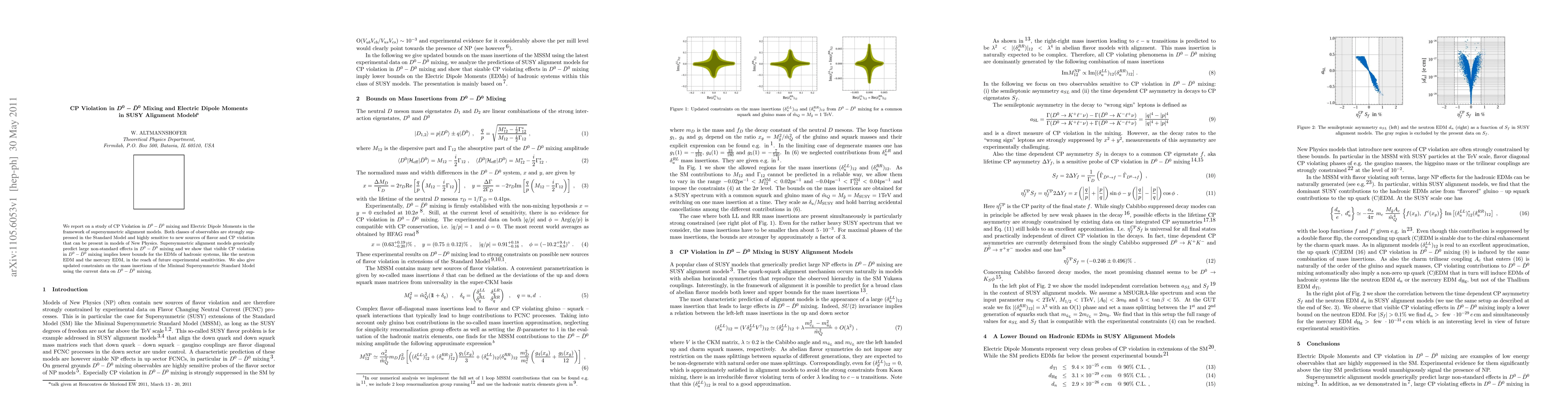 This paper explores CP violation in D0-D0bar mixing and Electric Dipole Moments (EDMs) within supersymmetric alignment models, revealing significant non-standard effects. The study suggests that visible CP violation in D0-D0bar mixing sets lower bounds for EDMs in systems like the neutron and mercury, aligning with future experimental capabilities.