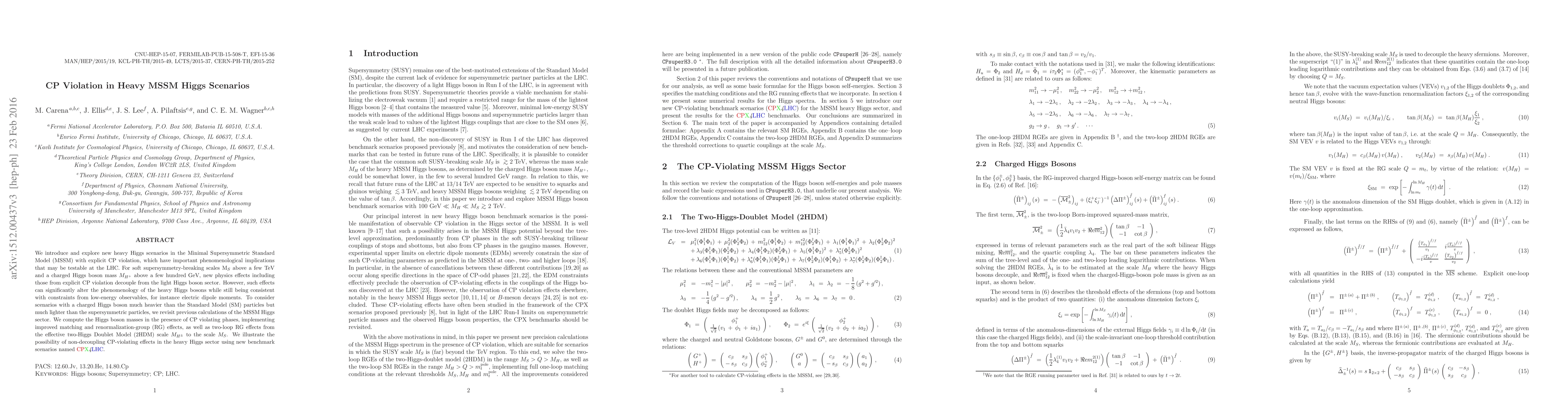 We introduce and explore new heavy Higgs scenarios in the Minimal Supersymmetric Standard Model (MSSM) with explicit CP violation, which have important phenomenological implications that may be testable at the LHC. For soft supersymmetry-breaking scales M_S above a few TeV and a charged Higgs boson mass M_H+ above a few hundred GeV, new physics effects including those from explicit CP violation decouple from the light Higgs boson sector. However, such effects can significantly alter the phenomenology of the heavy Higgs bosons while still being consistent with constraints from low-energy observables, for instance electric dipole moments. To consider scenarios with a charged Higgs boson much heavier than the Standard Model (SM) particles but much lighter than the supersymmetric particles, we revisit previous calculations of the MSSM Higgs sector. We compute the Higgs boson masses in the presence of CP violating phases, implementing improved matching and renormalization group (RG) effects, as well as two-loop RG effects from the effective two-Higgs Doublet Model (2HDM) scale M_H+ to the scale M_S. We illustrate the possibility of non-decoupling CP-violating effects in the heavy Higgs sector using new benchmark scenarios named CPX4LHC.