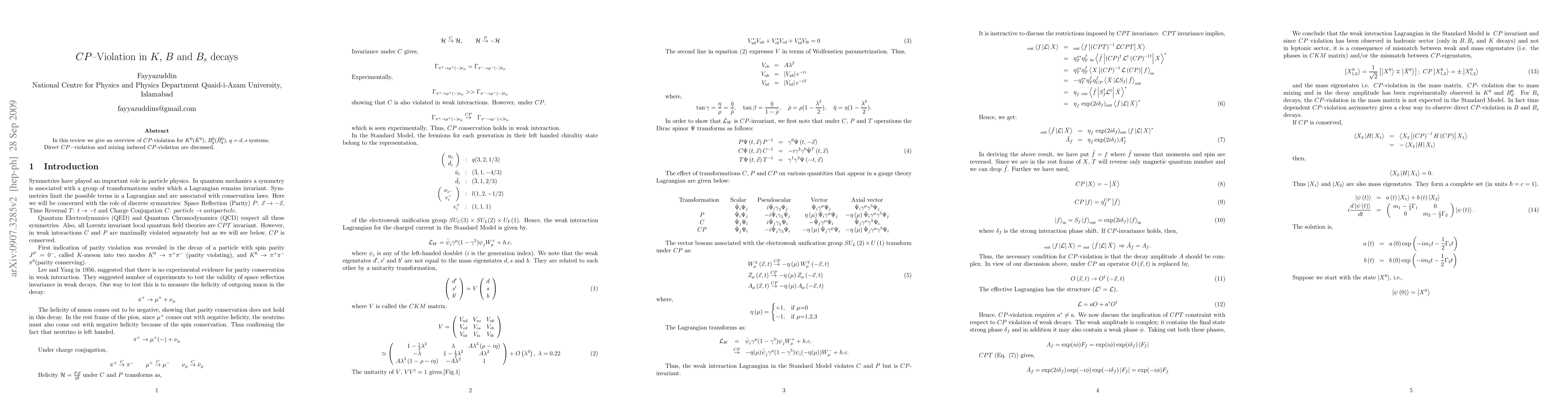 Summary: This review provides an overview of CP-violation in K, B, and B_s meson decays, focusing on both direct CP-violation and CP-violation arising from mixing processes.