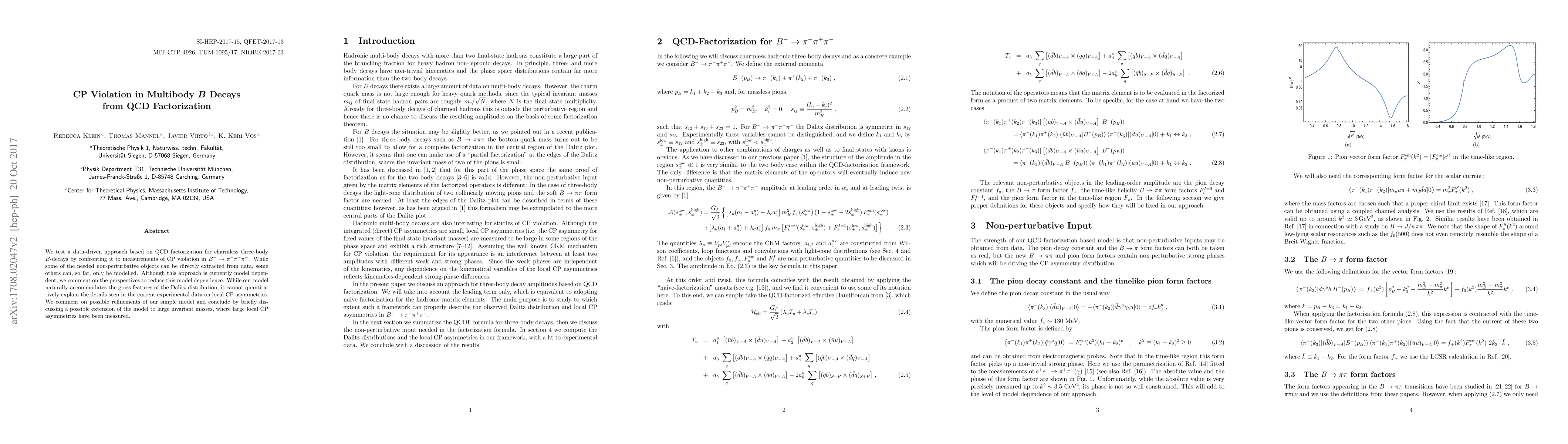 We test a data-driven approach based on QCD factorization for charmless three-body $B$-decays by confronting it to measurements of CP violation in $B^- \to \pi^- \pi^+ \pi^-$. While some of the needed non-perturbative objects can be directly extracted from data, some others can, so far, only be modelled. Although this approach is currently model dependent, we comment on the perspectives to reduce this model dependence. While our model naturally accommodates the gross features of the Dalitz distribution, it cannot quantitatively explain the details seen in the current experimental data on local CP asymmetries. We comment on possible refinements of our simple model and conclude by briefly discussing a possible extension of the model to large invariant masses, where large local CP asymmetries have been measured.