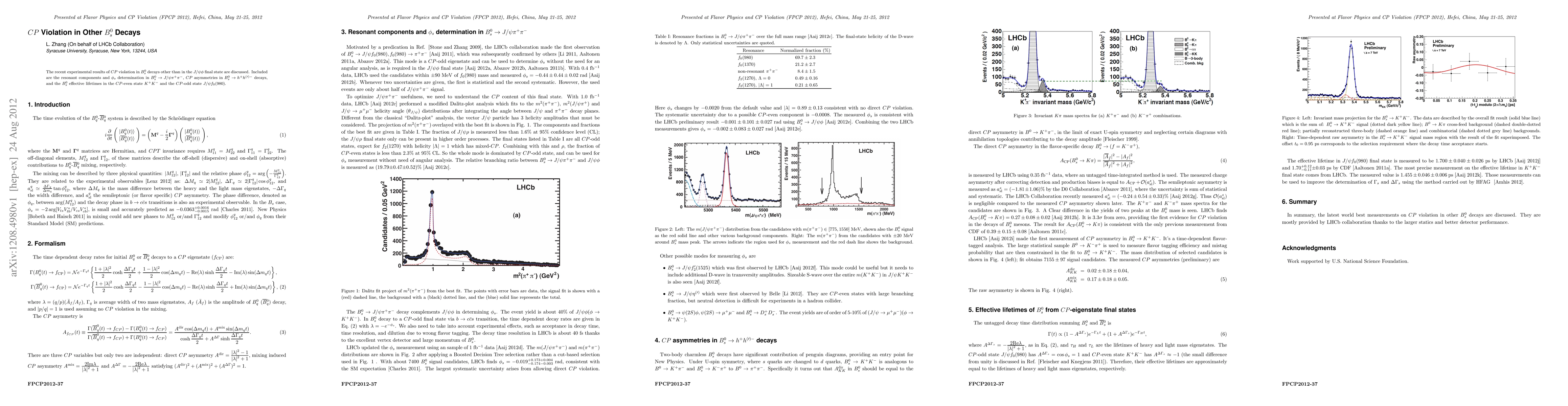 This paper discusses recent findings on CP violation in Bs meson decays excluding the J/psi phi final state, focusing on resonant components, $\phi_s$ determination in Bs -> J/psi pi+ pi-, CP asymmetries in Bs -> h+ h'- decays, and effective lifetimes in CP-even K+ K- and CP-odd J/psi f0(980) states.