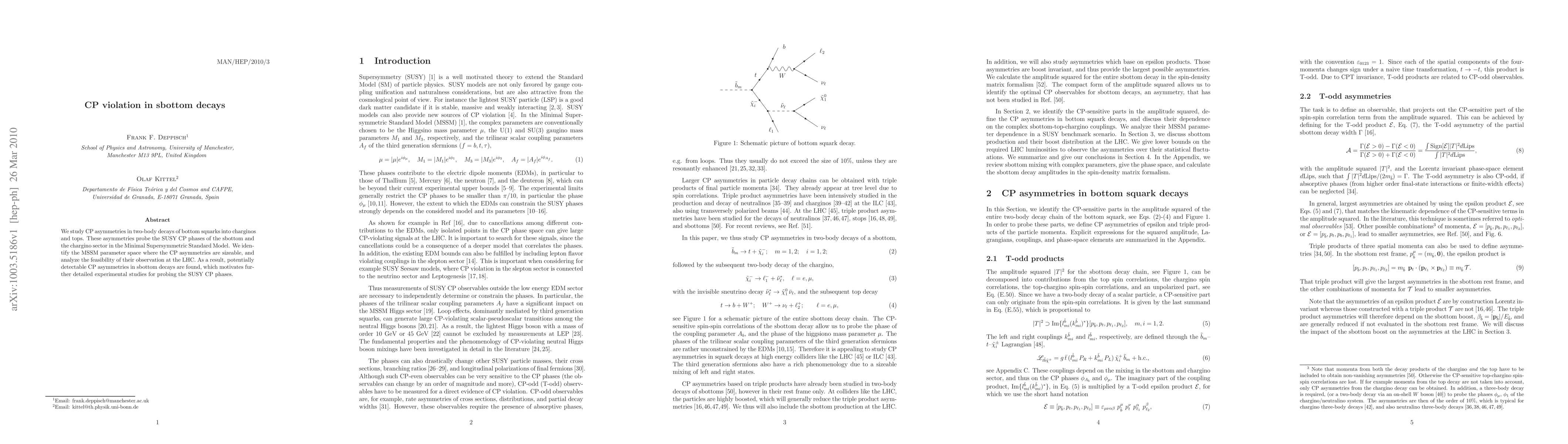 The study investigates CP asymmetries in sbottom decays within the Minimal Supersymmetric Standard Model (MSSM), focusing on two-body decays of bottom squarks into charginos and tops.