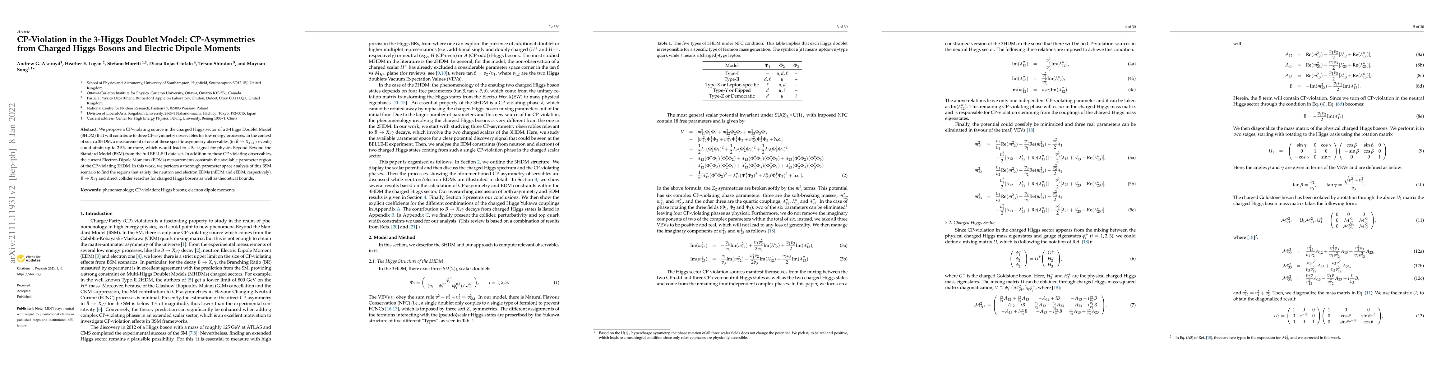 This paper explores CP-violation in a 3-Higgs Doublet Model, focusing on CP-asymmetries from charged Higgs bosons and Electric Dipole Moments. It proposes a significant CP-violating source in the charged Higgs sector that could provide evidence for physics beyond the Standard Model through specific asymmetry observables.