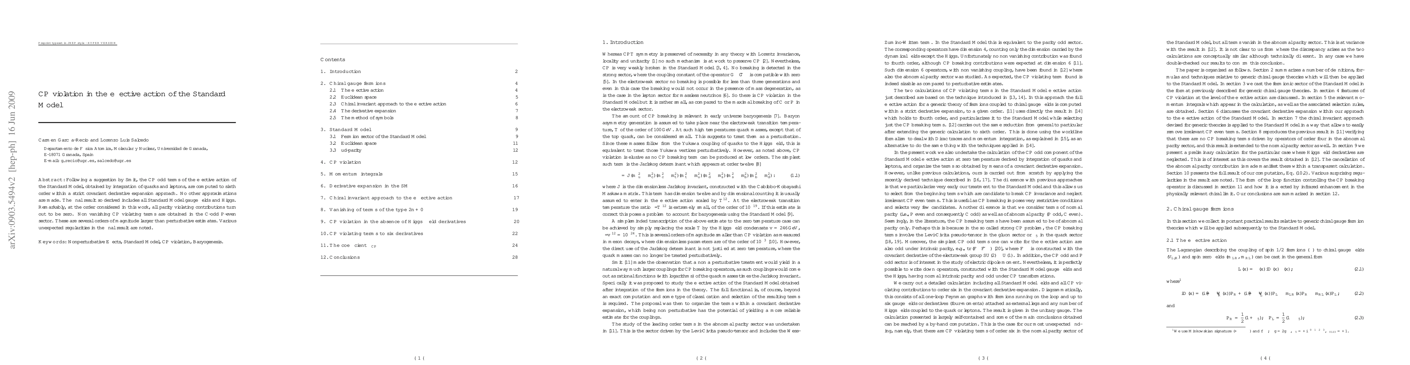 Following a suggestion by Smit, the CP odd terms of the effective action of the Standard Model, obtained by integration of quarks and leptons, are computed to sixth order within a strict covariant derivative expansion approach. No other approximations are made. The final result so derived includes all Standard Model gauge fields and Higgs. Remarkably, at the order considered in this work, all parity violating contributions turn out to be zero. Non vanishing CP violating terms are obtained in the C-odd P-even sector. These are several orders of magnitude larger than perturbative estimates. Various unexpected regularities in the final result are noted.