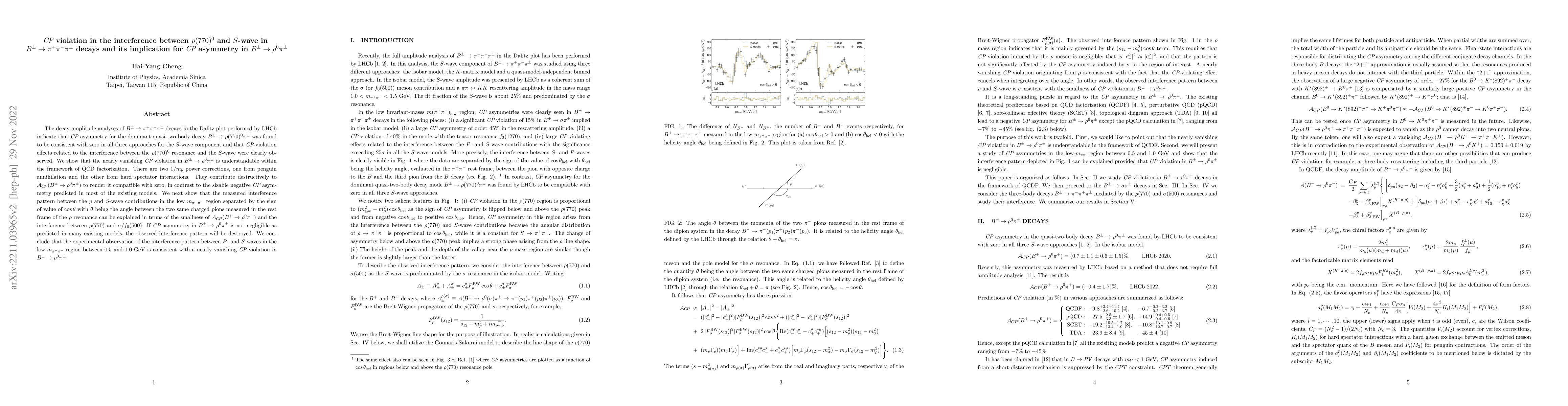 The decay amplitude analyses of $B^\pm\to \pi^+ \pi^-\pi^\pm$ decays in the Dalitz plot performed by LHCb indicate that CP asymmetry for the dominant quasi-two-body decay $B^\pm\to\rho(770)^0\pi^\pm$ was found to be consistent with zero in all three approaches for the $S$-wave component and that CP-violation effects related to the interference between the $\rho(770)^0$ resonance and the $S$-wave were clearly observed. We show that the nearly vanishing CP violation in $B^\pm\to\rho^0\pi^\pm$ is understandable within the framework of QCD factorization. There are two $1/m_b$ power corrections, one from penguin annihilation and the other from hard spectator interactions. They contribute destructively to $A_{CP}(B^\pm\to\rho^0\pi^\pm)$ to render it compatible with zero, in contrast to the sizable negative CP asymmetry predicted in most of the existing models. We next show that the measured interference pattern between the $\rho$ and $S$-wave contributions in the low $m_{\pi^+\pi^-}$ region separated by the sign of value of $\cos\theta$ with $\theta$ being the angle between the two same charged pions measured in the rest frame of the $\rho$ resonance can be explained in terms of the smallness of $A_{CP}(B^+\to\rho^0\pi^+)$ and the interference between $\rho(770)$ and $\sigma/f_0(500)$. If CP asymmetry in $B^\pm\to\rho^0\pi^\pm$ is not negligible as predicted in many existing models, the observed interference pattern will be destroyed. We conclude that the experimental observation of the interference pattern between $P$- and $S$-waves in the low-$m_{\pi^+\pi^-}$ region between 0.5 and 1.0 GeV is consistent with a nearly vanishing CP violation in $B^\pm\to\rho^0\pi^\pm$.