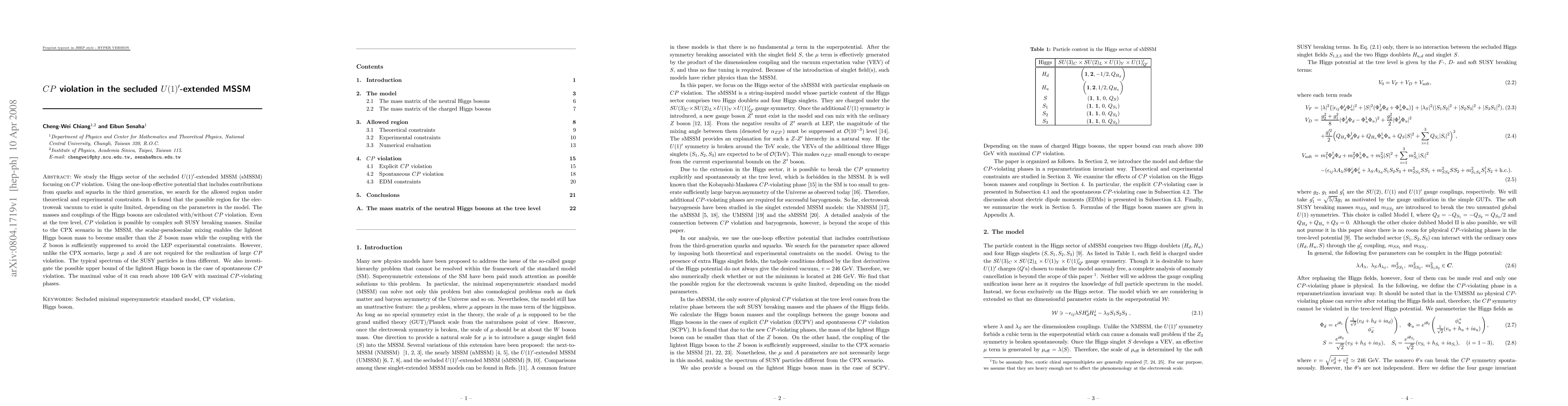 This paper investigates CP violation in the secluded $U(1)'$-extended MSSM, finding that large CP violation can occur without requiring large $\mu$ and $A$ parameters. The study reveals a limited region for electroweak vacuum stability and explores the implications of scalar-pseudoscalar mixing on the lightest Higgs boson mass.