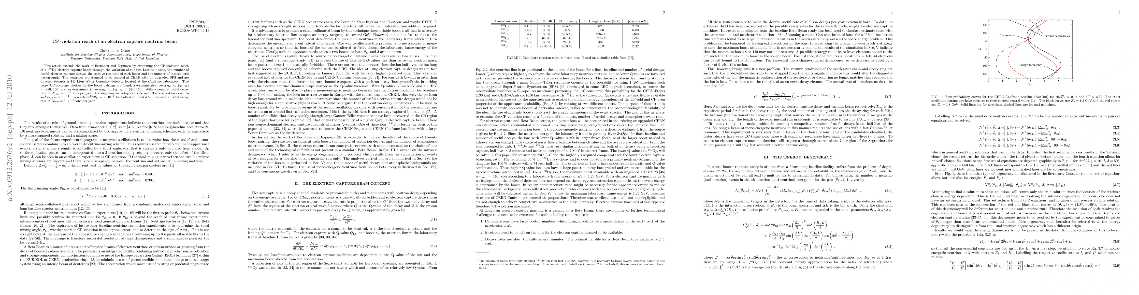 This article extends the work of Bernabeu and Espinoza by examining the CP-violation reach of a $^{150}$Dy electron capture beam through the variation of the two Lorentz boosts, the number of useful electron capture decays, the relative run time of each boost and the number of atmospheric backgrounds. The neutrinos are assumed to be sourced at CERN with an upgraded SPS and are directed towards a 440 kton Water Cerenkov detector located at the Canfranc laboratory. Two large `CP-coverage' choices for the boost pairings are found; a $\delta$-symmetrical coverage for $(\gamma_{1}, \gamma_{2})$ = (280, 160) and an $\delta$-asymmetric coverage for $(\gamma_{1}, \gamma_{2})$ = (440,150). With a nominal useful decay rate of $N_{\rm ions} = 10^{18}$ ions per year, the $\delta$-symmetric setup can rule out CP-conservation down to $\sin^{2}2\theta_{13} = 3\cdot 10^{-4}$. To reach $\sin^{2}2\theta_{13} = 1\cdot 10^{-3}$ for both $\delta < 0$ and $\delta > 0$ requires a useful decay rate of $N_{\rm ions} = 6\cdot 10^{17}$ ions per year.