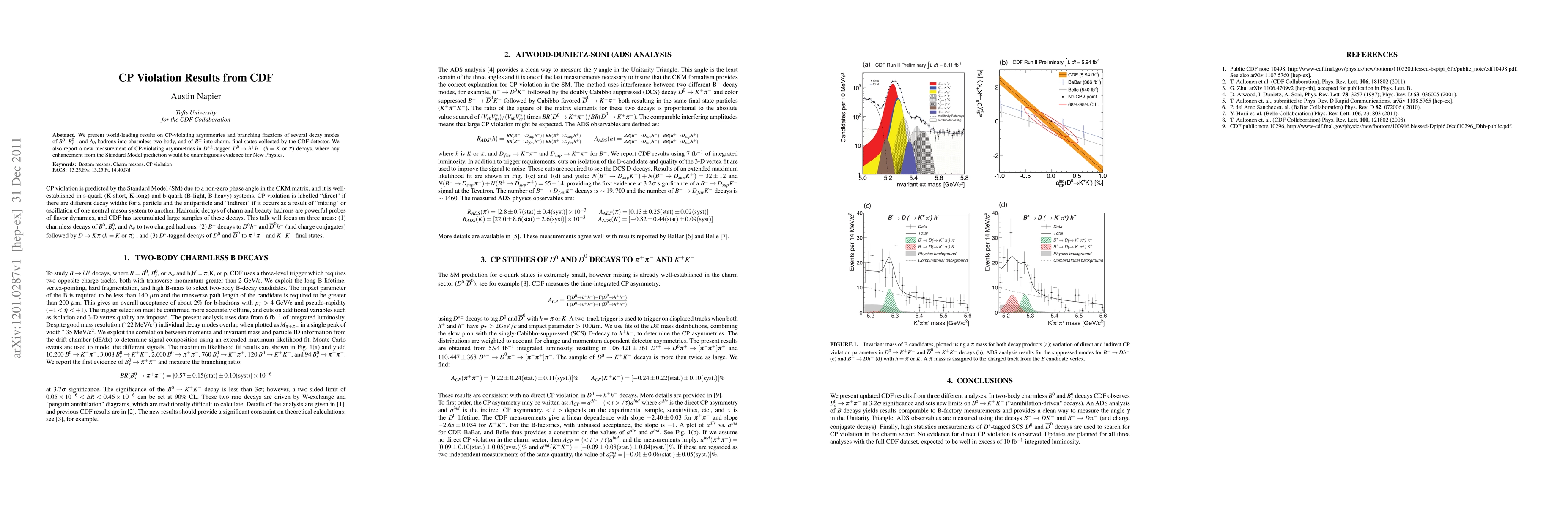 This paper presents leading results from the CDF detector on CP-violating asymmetries in various B-hadron decay modes, including B0, B0s, and Λb, and suggests potential new physics beyond the Standard Model if observed enhancements occur in D*±-tagged D0 decays.