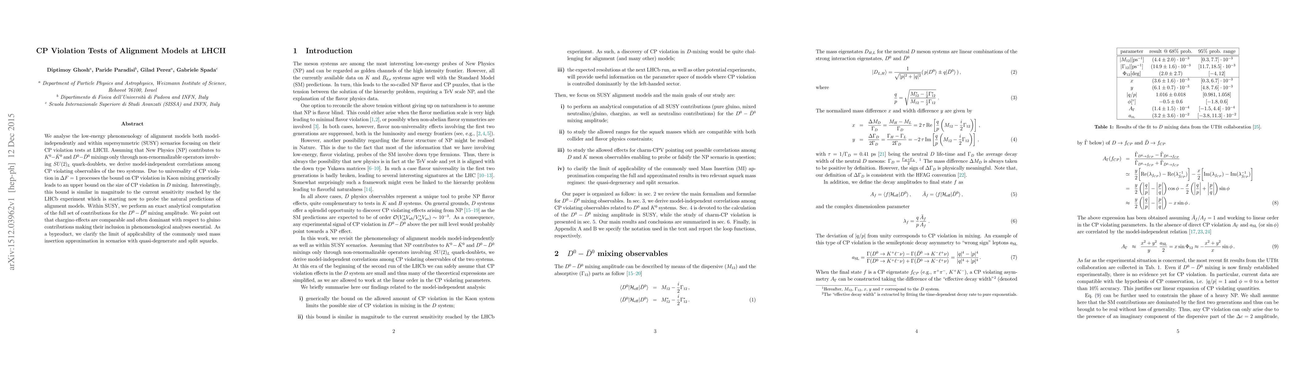 We analyse the low-energy phenomenology of alignment models both model-independently and within supersymmetric (SUSY) scenarios focusing on their CP violation tests at LHCII. Assuming that New Physics (NP) contributes to K-Kbar and D-Dbar mixings only through non-renormalizable operators involving SU(2)_L quark-doublets, we derive model-independent correlations among CP violating observables of the two systems. Due to universality of CP violation in Delta F=1 processes the bound on CP violation in Kaon mixing generically leads to an upper bound on the size of CP violation in D mixing. Interestingly, this bound is similar in magnitude to the current sensitivity reached by the LHCb experiment which is starting now to probe the natural predictions of alignment models. Within SUSY, we perform an exact analytical computation of the full set of contributions for the D-Dbar mixing amplitude. We point out that chargino effects are comparable and often dominant with respect to gluino contributions making their inclusion in phenomenological analyses essential. As a byproduct, we clarify the limit of applicability of the commonly used mass insertion approximation in scenarios with quasi-degenerate and split squarks.