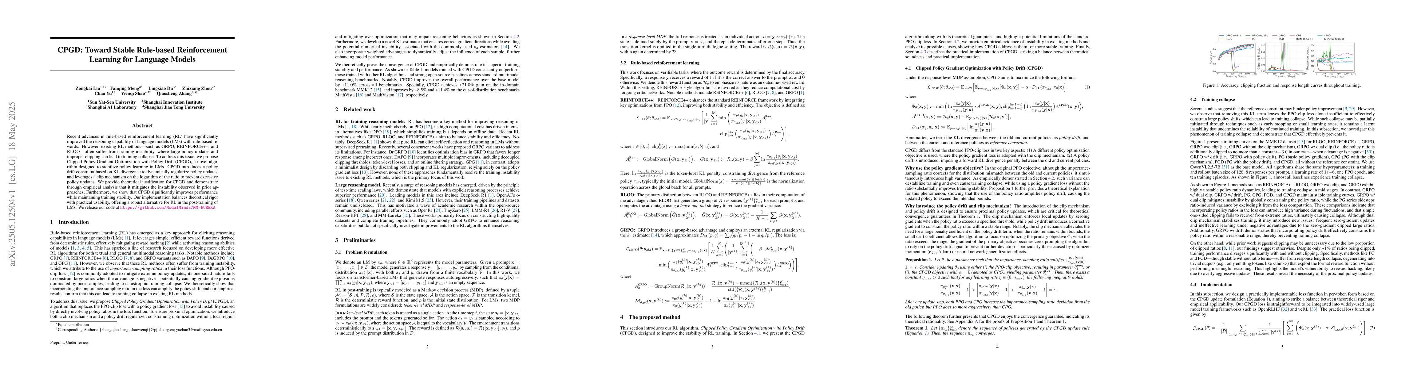 Researchers propose CPGD, a novel algorithm to stabilize rule-based reinforcement learning for language models, addressing training instability issues with improved performance.