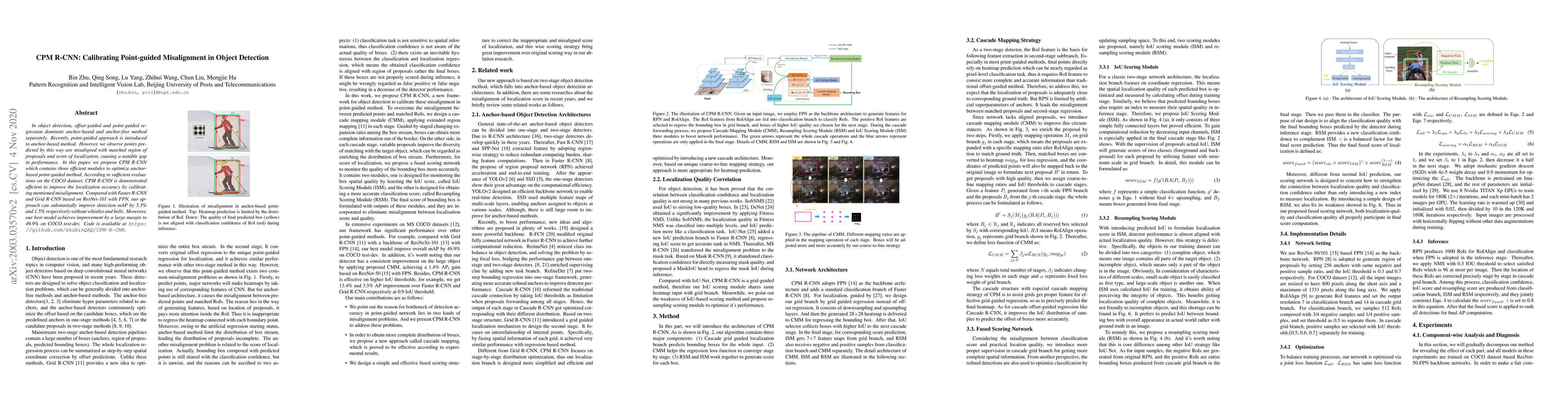 In object detection, offset-guided and point-guided regression dominate anchor-based and anchor-free method separately. Recently, point-guided approach is introduced to anchor-based method. However, we observe points predicted by this way are misaligned with matched region of proposals and score of localization, causing a notable gap in performance. In this paper, we propose CPM R-CNN which contains three efficient modules to optimize anchor-based point-guided method. According to sufficient evaluations on the COCO dataset, CPM R-CNN is demonstrated efficient to improve the localization accuracy by calibrating mentioned misalignment. Compared with Faster R-CNN and Grid R-CNN based on ResNet-101 with FPN, our approach can substantially improve detection mAP by 3.3% and 1.5% respectively without whistles and bells. Moreover, our best model achieves improvement by a large margin to 49.9% on COCO test-dev. Code and models will be publicly available.