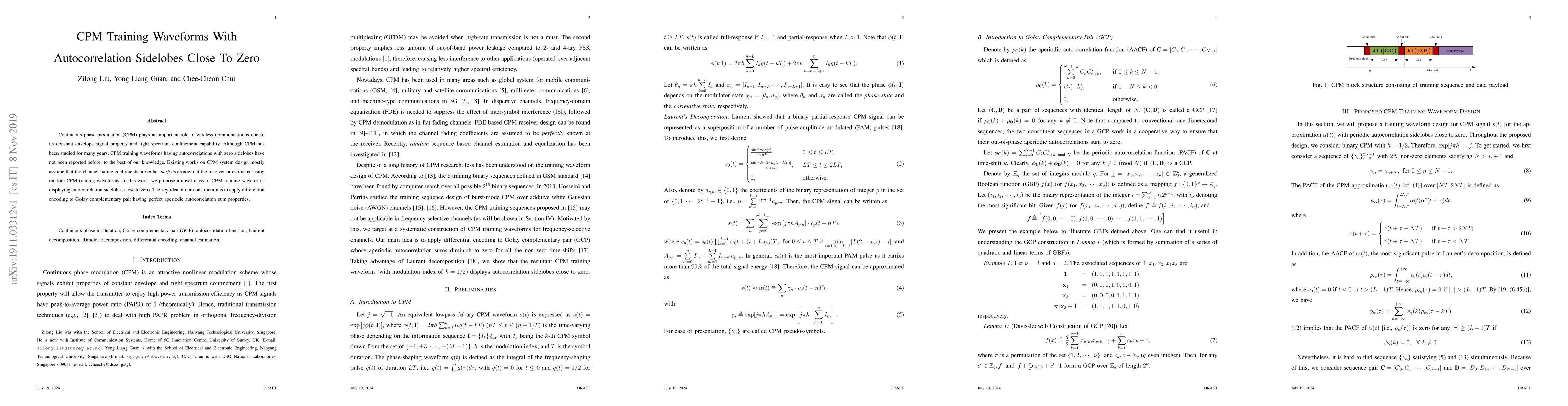 This paper proposes a novel class of continuous phase modulation (CPM) training waveforms with near-zero autocorrelation sidelobes, achieved by differential encoding of a Golay complementary pair, enhancing the efficiency and accuracy of wireless communication systems. The new training waveforms improve channel estimation by reducing sidelobe interference.