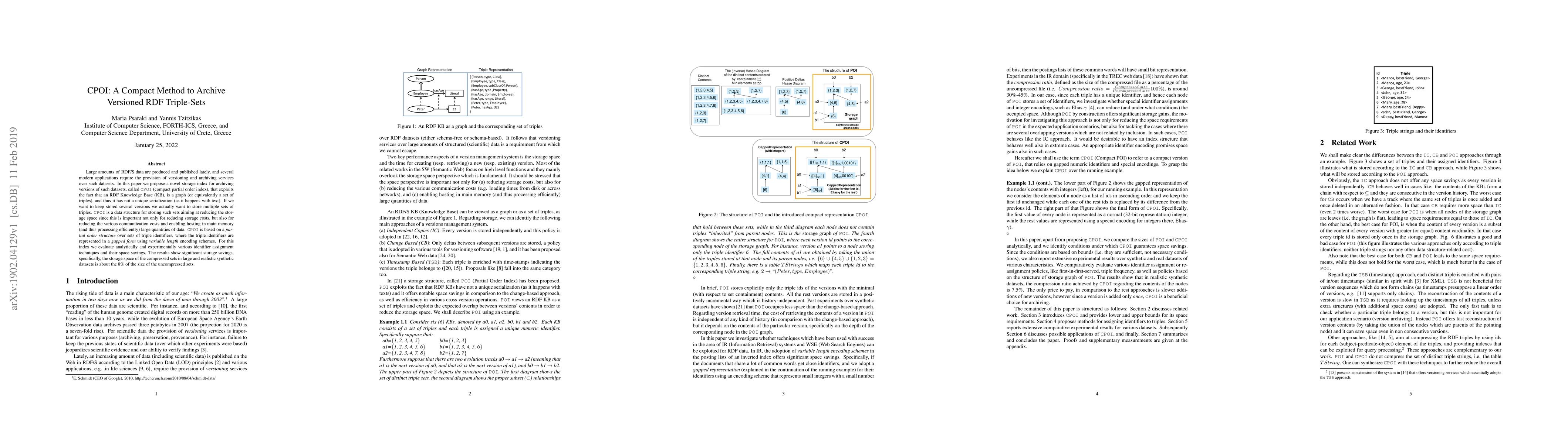 The paper proposes CPOI, a compact storage index for archiving versioned RDF triple-sets, which leverages partial order structures and variable length encoding to significantly reduce storage space, achieving about 8% of the size of uncompressed sets. The method aims to efficiently store multiple versions of RDF datasets, reducing both storage and communication costs.