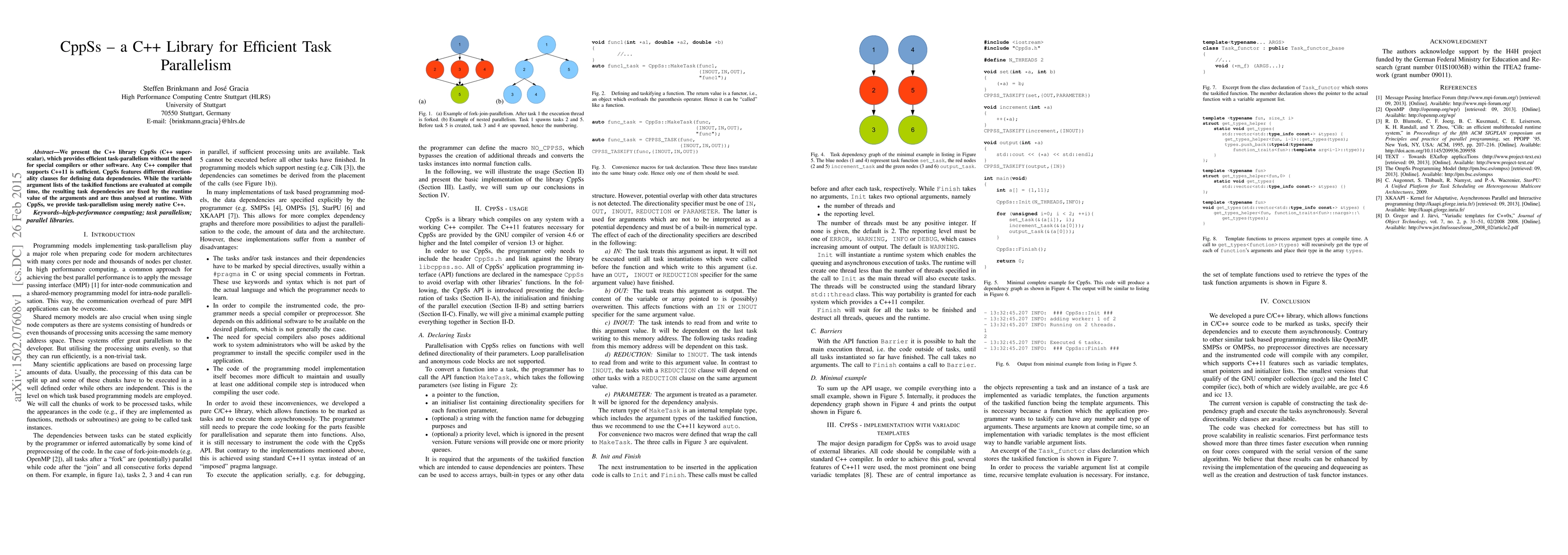 The C++ library CppSs offers efficient task parallelism using native C++, requiring only a C++11 compatible compiler. It analyzes dependencies at runtime, despite compile-time evaluation of variable arguments in taskified functions.