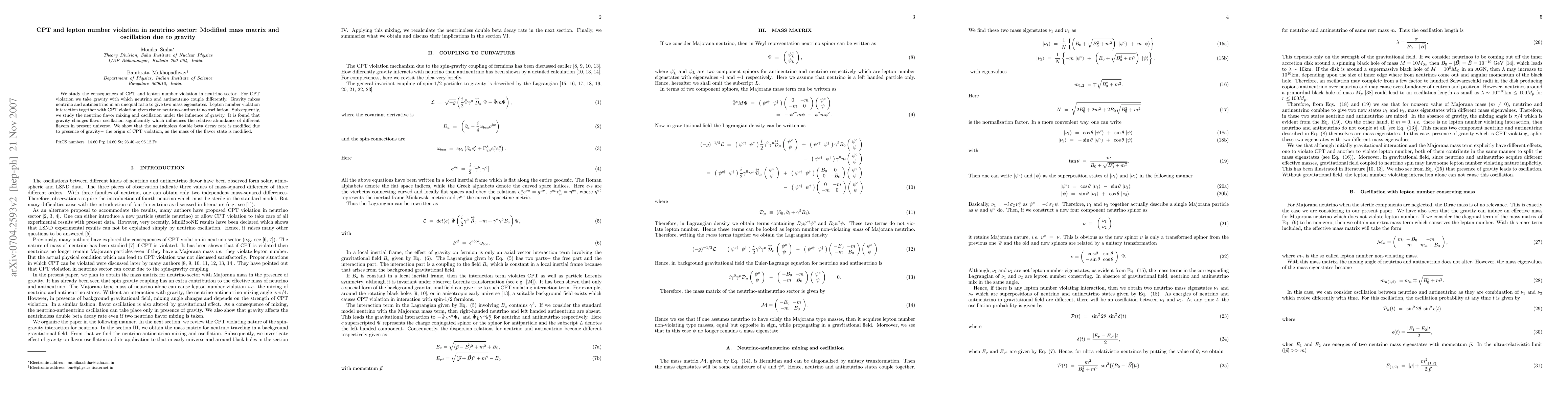 We study the consequences of CPT and lepton number violation in neutrino sector. For CPT violation we take gravity with which neutrino and antineutrino couple differently. Gravity mixes neutrino and antineutrino in an unequal ratio to give two mass eigenstates. Lepton number violation interaction together with CPT violation gives rise to neutrino-antineutrino oscillation. Subsequently, we study the neutrino flavor mixing and oscillation under the influence of gravity. It is found that gravity changes flavor oscillation significantly which influences the relative abundance of different flavors in present universe. We show that the neutrinoless double beta decay rate is modified due to presence of gravity- the origin of CPT violation, as the mass of the flavor state is modified.