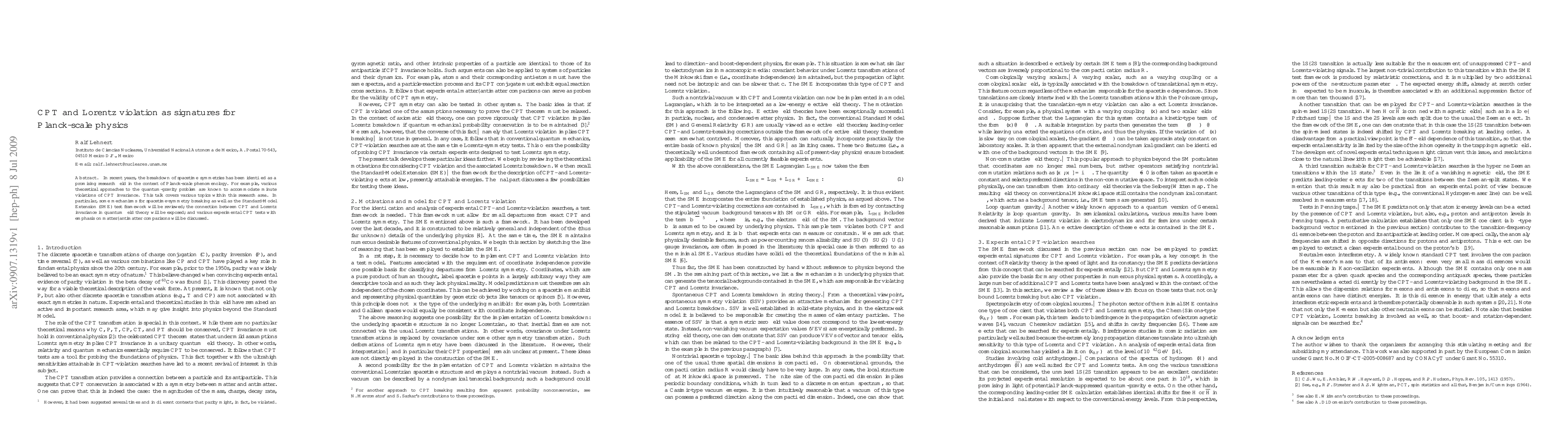 This paper reviews theoretical approaches to quantum gravity that predict minute violations of CPT invariance, discusses mechanisms for spacetime-symmetry breaking, and explores experimental tests focusing on matter-antimatter comparisons to identify signatures of Planck-scale physics.
