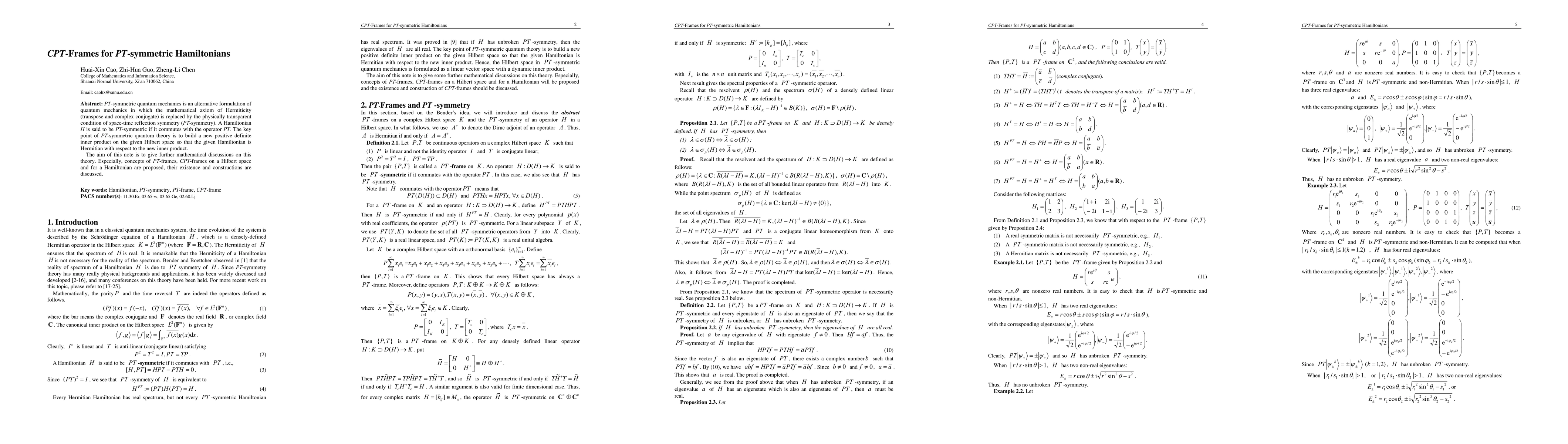 This paper explores PT-symmetric quantum mechanics, proposing PT-frames and CPT-frames on a Hilbert space to construct a new positive definite inner product, making PT-symmetric Hamiltonians Hermitian under this new framework. The paper discusses the existence and construction of these frames.