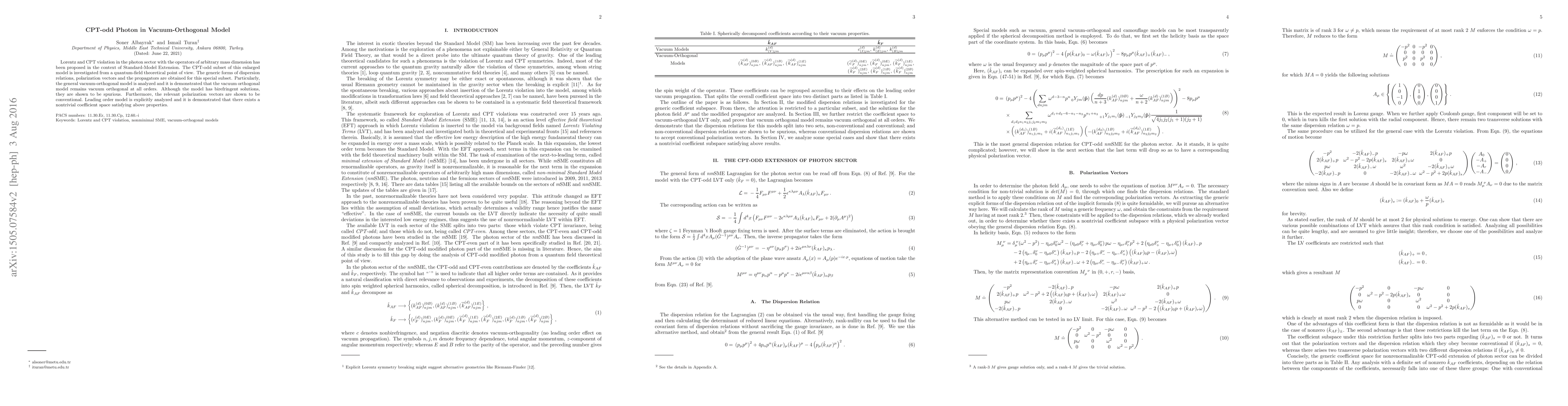 Research investigates CPT-odd photon behavior in a Standard-Model Extension, finding that certain models, including the vacuum-orthogonal model, remain orthogonal at all orders and do not produce spurious solutions.