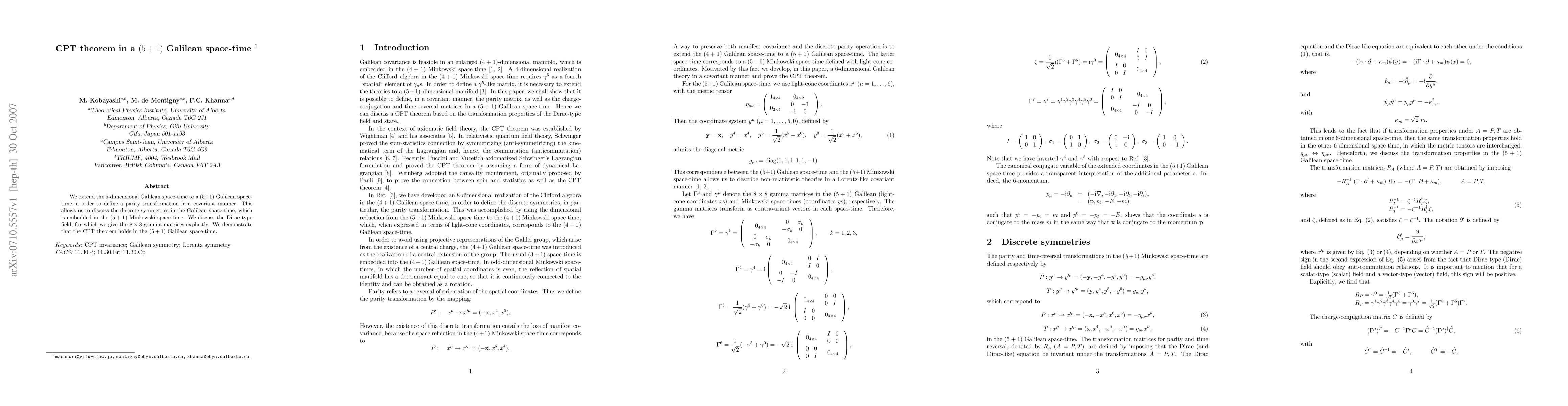Researchers extended Galilean space-time to 6D for a CPT theorem study, demonstrating its validity in this framework. They also defined gamma matrices for Dirac-type fields in the new space-time.