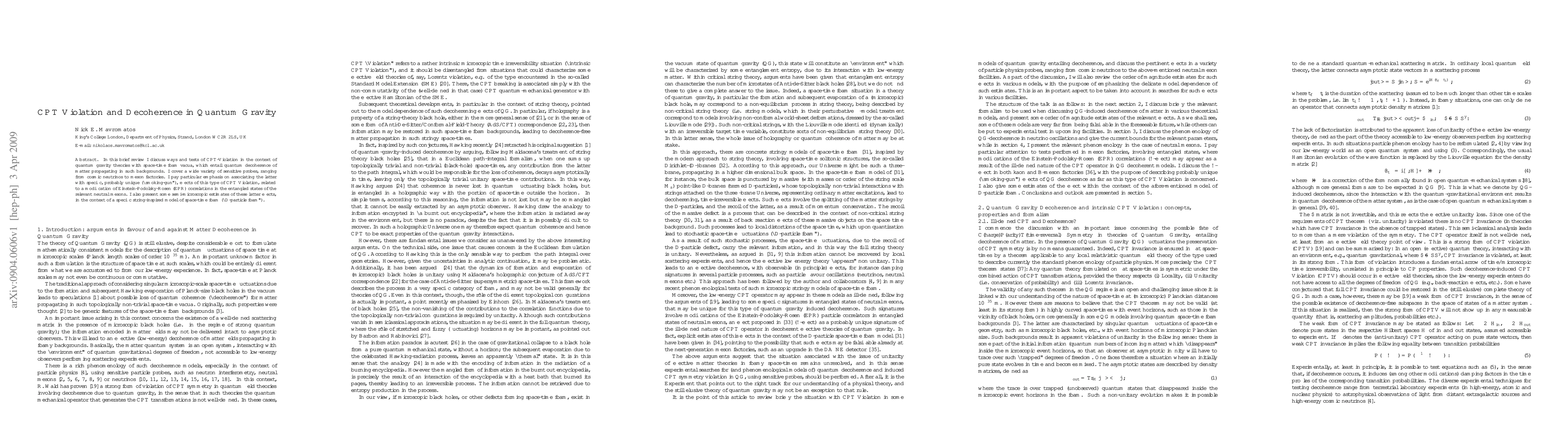This paper reviews potential tests for CPT violation in quantum gravity theories featuring space-time foam vacua, focusing on quantum decoherence effects. It highlights specific "smoking-gun" effects in neutral mesons, particularly modifications in Einstein-Podolsky-Rosen correlations, and provides semi-microscopic estimates within a string-inspired model.
