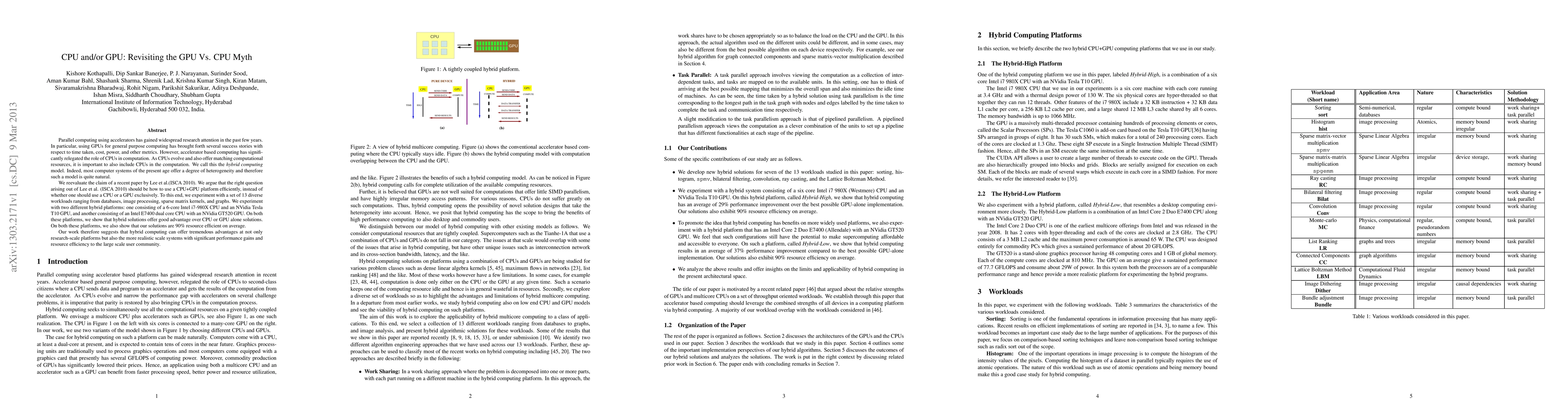 This paper reevaluates the GPU vs. CPU debate by advocating for hybrid computing models that leverage both CPUs and GPUs for parallel computing. Through experiments with diverse workloads on two hybrid platforms, the authors demonstrate that hybrid solutions offer significant performance and resource efficiency advantages over using either a CPU or GPU alone.