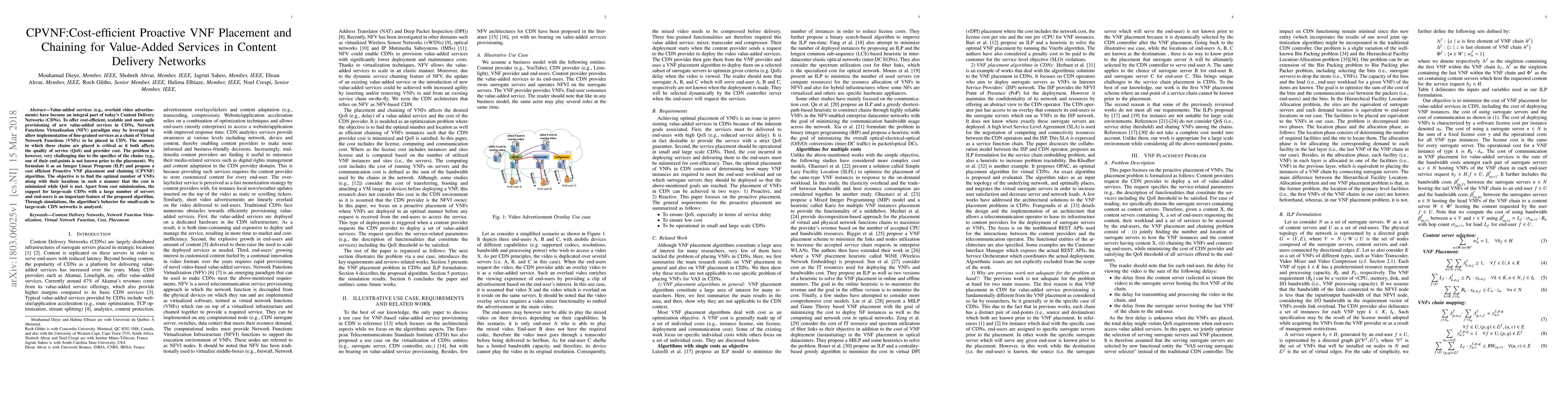 The paper proposes a cost-efficient algorithm, CPVNF, for proactive placement and chaining of Virtual Network Functions (VNFs) in Content Delivery Networks (CDNs) to support value-added services. The algorithm aims to minimize cost while meeting Quality of Service (QoS) requirements, leveraging an Integer Linear Program (ILP) formulation and demonstrating scalability for large-scale networks.