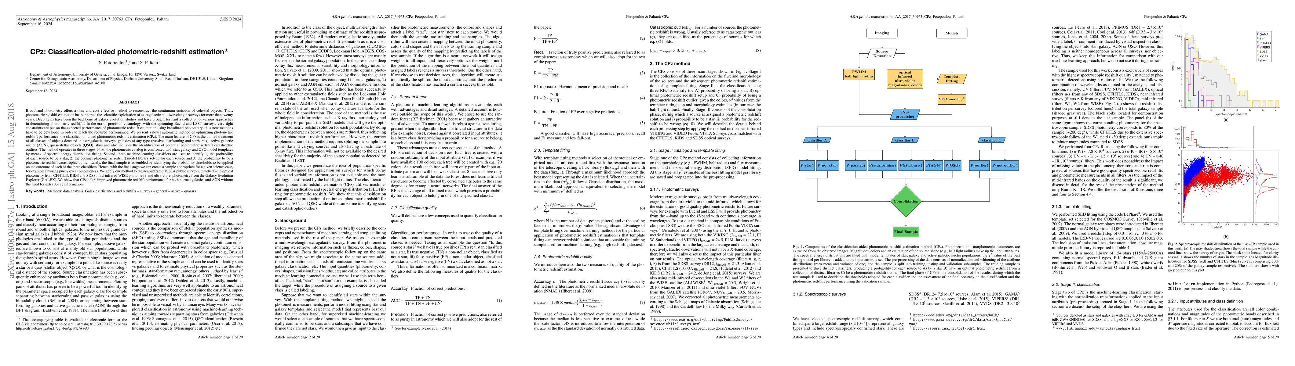 The CPz method optimizes photometric redshift estimation by integrating classification techniques to handle all object types in extragalactic surveys, improving performance for galaxies and AGN without requiring X-ray data. It employs spectral fitting, machine-learning classifiers, and threshold probabilities to achieve this.