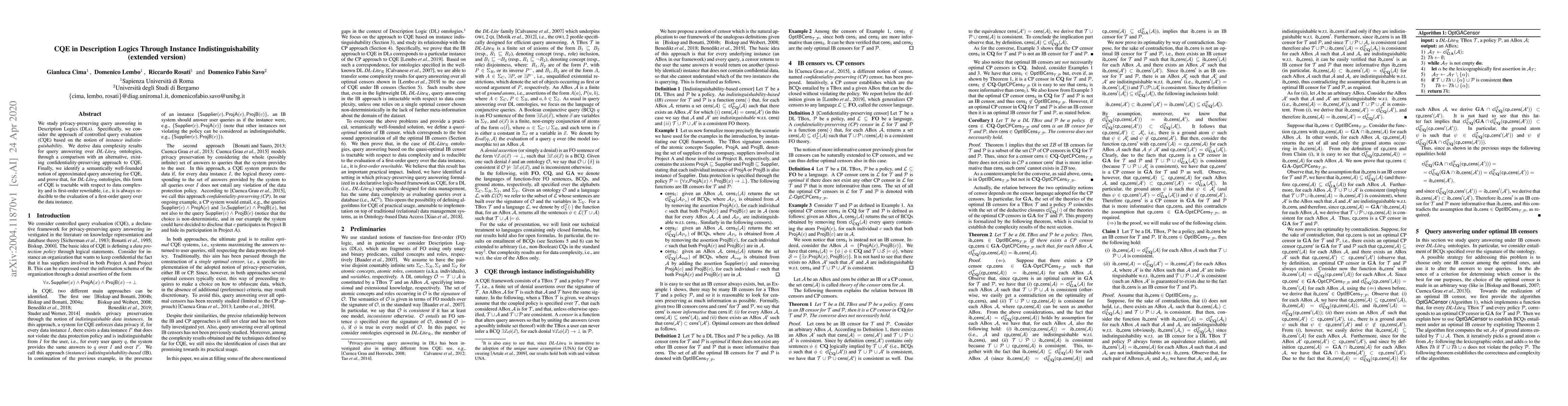 Researchers developed a privacy-preserving query answering approach in Description Logics through instance indistinguishability, achieving tractability with respect to data complexity and first-order rewritability.