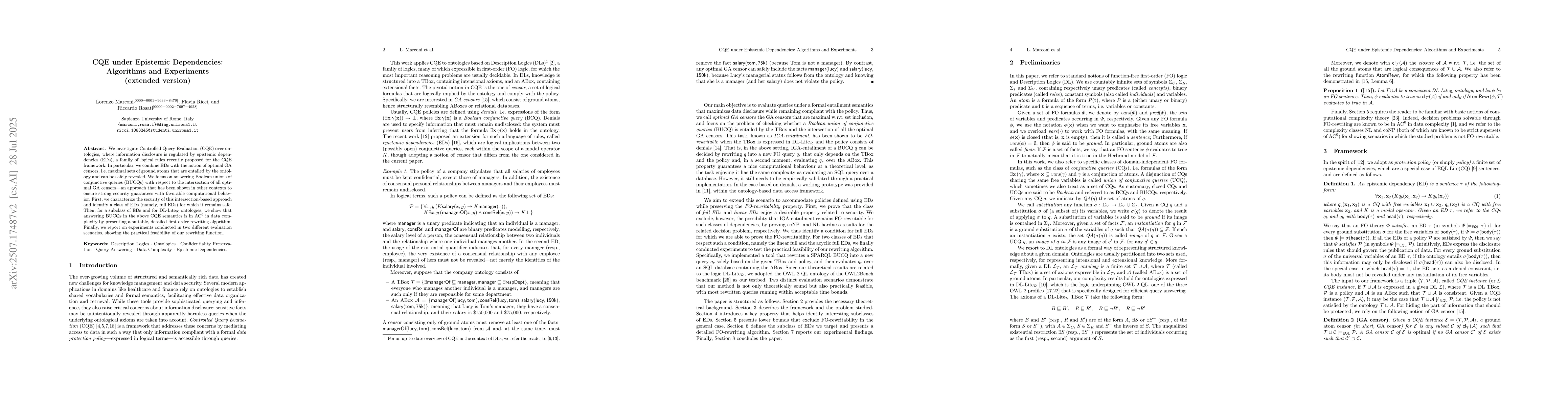 This research investigates a method for controlled query evaluation in ontologies, using epistemic dependencies (EDs) to regulate information disclosure. The study combines EDs with optimal GA censors, ensuring strong security guarantees and favorable computational behavior. It identifies a class of EDs (full EDs) for which the approach remains secure, and presents a first-order rewriting algorithm for DL-Lite_R ontologies, proving its data complexity to be in AC^0. Experiments demonstrate the practical feasibility of the rewriting function.