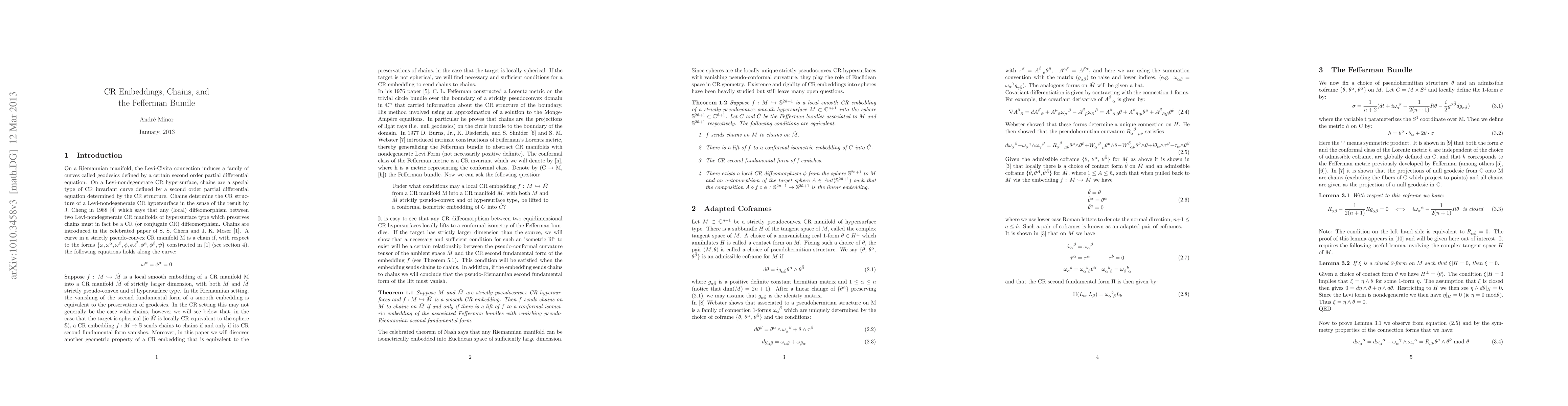 In this paper it is shown that a CR embedding from one strictly pseudoconvex hypersurface into another (of strictly larger dimension) sends chains on the source to chains on the target if and only if the embedding has a lift to a conformal isometry of the associated Fefferman bundles with vanishing pseudo-Riemannian second fundamental form. When the target is a sphere these conditions simplify nicely.