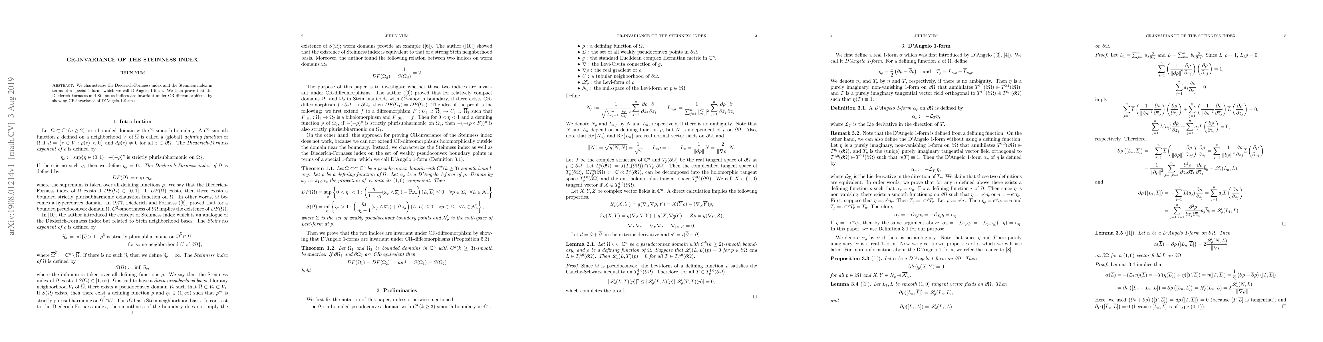 We characterize the Diederich-Fornaess index and the Steinness index in terms of a special 1-form, which we call D'Angelo 1-form. We then prove that the Diederich-Fornaess and Steinness indices are invariant under CR-diffeomorphisms by showing CR-invariance of D'Angelo 1-forms.
