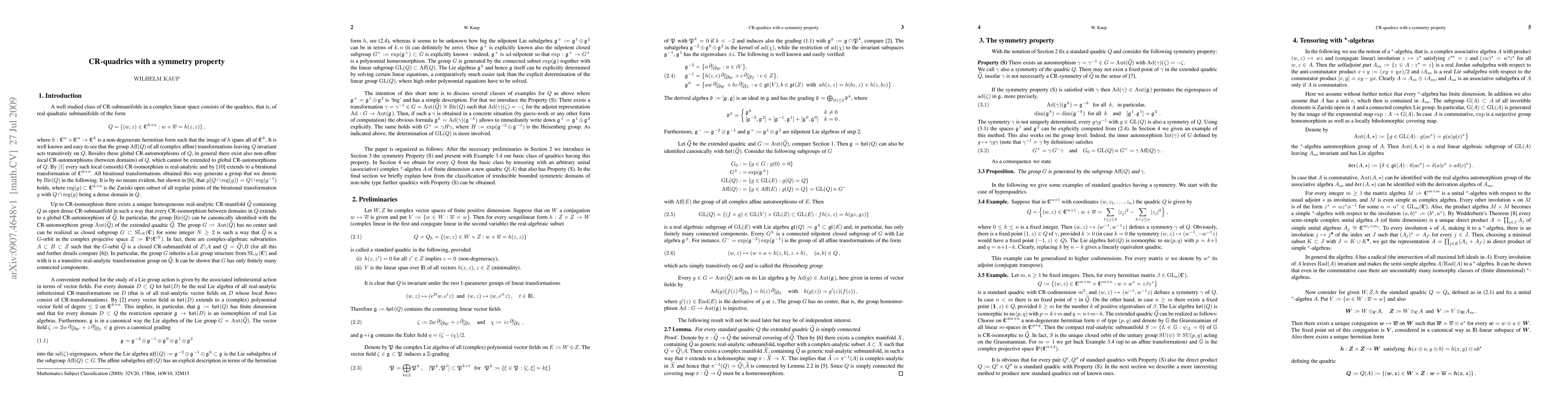 Motivated by the Shilov boundaries of bounded symmetric domains we consider arbitrary CR-quadrics in a complex linear space (of finite dimension) that have a certain symmetry property. For these the non-affine local CR-automorphisms have a simple explicit description. A large class of examples is presented.
