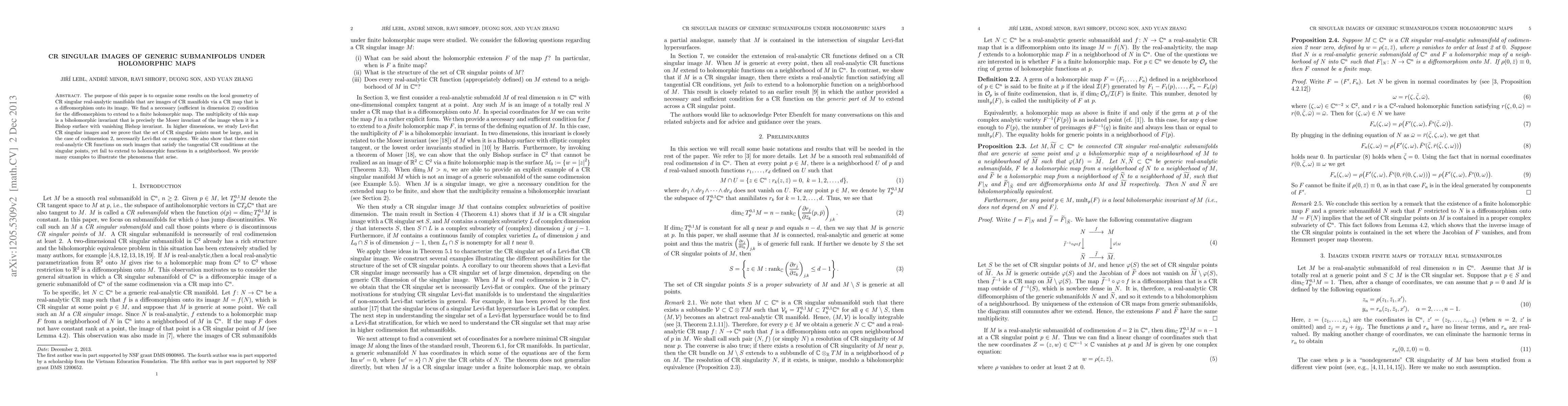 Researchers study CR singular images of generic submanifolds under holomorphic maps, finding a necessary condition for the map to extend to a finite holomorphic function, which relates to the Moser invariant.