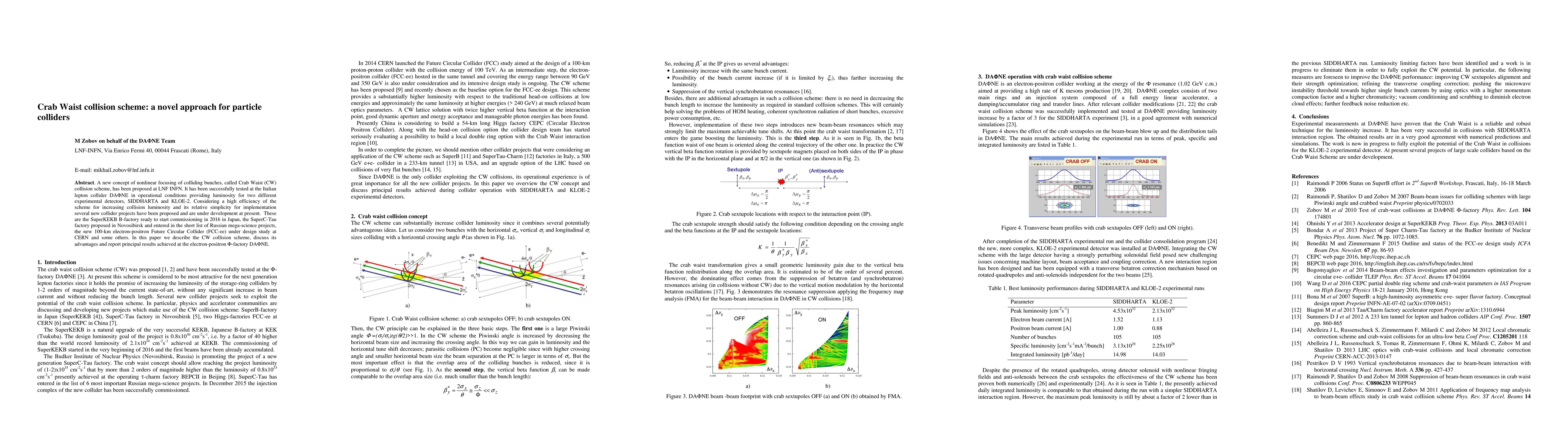Researchers propose a new collision scheme called Crab Waist that increases luminosity at particle colliders with high efficiency and relative simplicity. This concept has been successfully tested at the DAFNE collider in Italy and is being considered for several upcoming projects.