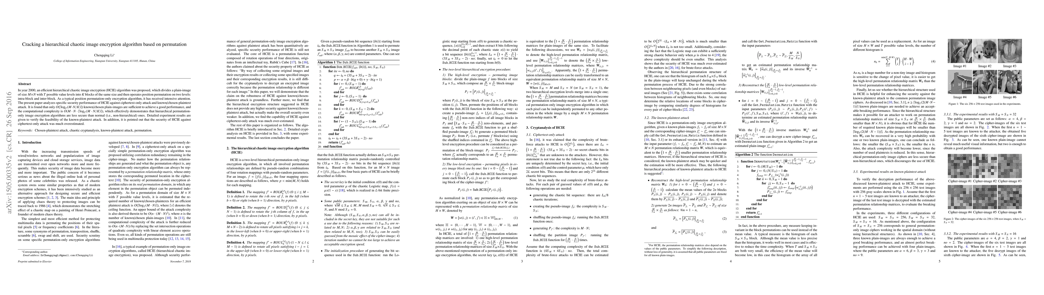 This paper analyzes the security of a 2000 hierarchical chaotic image encryption algorithm, finding it vulnerable to known-plaintext attacks with $O(\lceil\log_T(M\cdot N/K) \rceil)$ known images, and demonstrating that hierarchical permutation-only encryption is less secure than non-hierarchical methods.