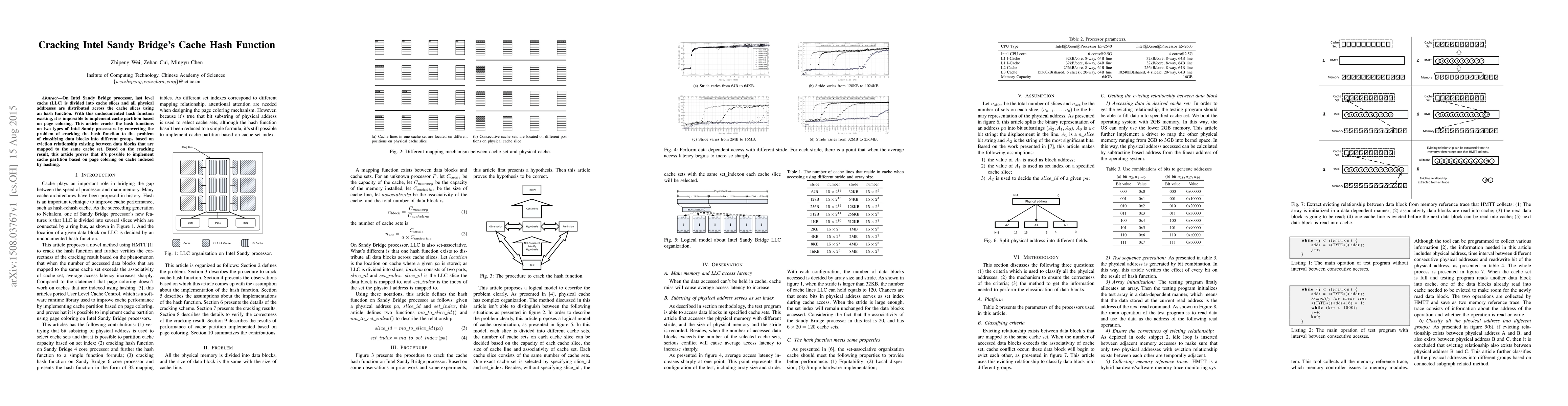 This paper uncovers the undocumented hash function used in Intel Sandy Bridge processors to distribute physical addresses across cache slices, enabling cache partitioning through page coloring despite the lack of documentation. The authors achieve this by classifying data blocks based on eviction relationships within the same cache set.