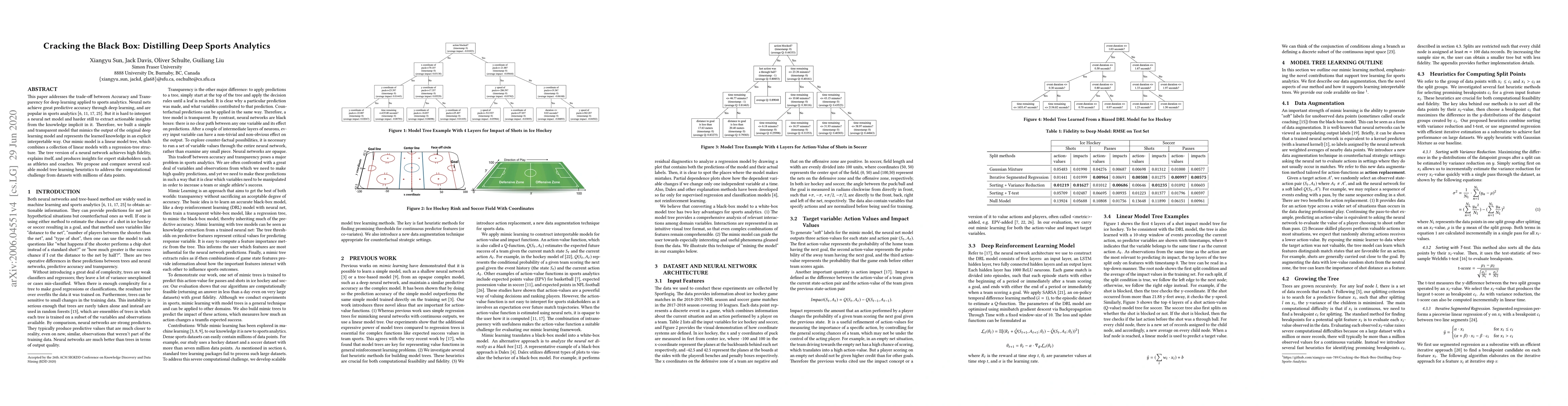 This paper addresses the trade-off between Accuracy and Transparency for deep learning applied to sports analytics. Neural nets achieve great predictive accuracy through deep learning, and are popular in sports analytics. But it is hard to interpret a neural net model and harder still to extract actionable insights from the knowledge implicit in it. Therefore, we built a simple and transparent model that mimics the output of the original deep learning model and represents the learned knowledge in an explicit interpretable way. Our mimic model is a linear model tree, which combines a collection of linear models with a regression-tree structure. The tree version of a neural network achieves high fidelity, explains itself, and produces insights for expert stakeholders such as athletes and coaches. We propose and compare several scalable model tree learning heuristics to address the computational challenge from datasets with millions of data points.
