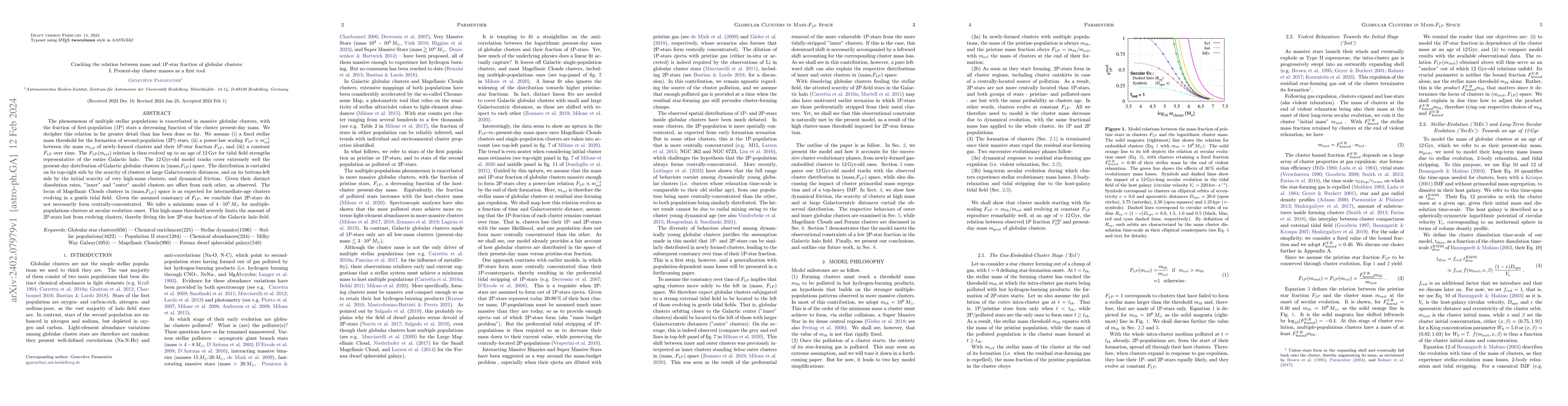 The phenomenon of multiple stellar populations is exacerbated in massive globular clusters, with the fraction of first-population (1P) stars a decreasing function of the cluster present-day mass. We decipher this relation in far greater detail than has been done so far. We assume (i) a fixed stellar mass threshold for the formation of second-population (2P) stars, (ii) a power-law scaling $F_{1P} \propto m_{ecl}^{-1}$ between the mass $m_{ecl}$ of newly-formed clusters and their 1P-star fraction $F_{1P}$, and (iii) a constant $F_{1P}$ over time. The $F_{1P}(m_{ecl})$ relation is then evolved up to an age of 12Gyr for tidal field strengths representative of the entire Galactic halo. The 12Gyr-old model tracks cover extremely well the present-day distribution of Galactic globular clusters in (mass,$F_{1P}$) space. The distribution is curtailed on its top-right side by the scarcity of clusters at large Galactocentric distances, and on its bottom-left side by the initial scarcity of very high-mass clusters, and dynamical friction. Given their distinct dissolution rates, "inner" and "outer" model clusters are offset from each other, as observed. The locus of Magellanic Clouds clusters in (mass,$F_{1P}$) space is as expected for intermediate-age clusters evolving in a gentle tidal field. Given the assumed constancy of $F_{1P}$, we conclude that 2P-stars do not necessarily form centrally-concentrated. We infer a minimum mass of $4 \cdot 10^5~M_{\odot}$ for multiple-populations clusters at secular evolution onset. This high-mass threshold severely limits the amount of 2P-stars lost from evolving clusters, thereby fitting the low 2P-star fraction of the Galactic halo field.