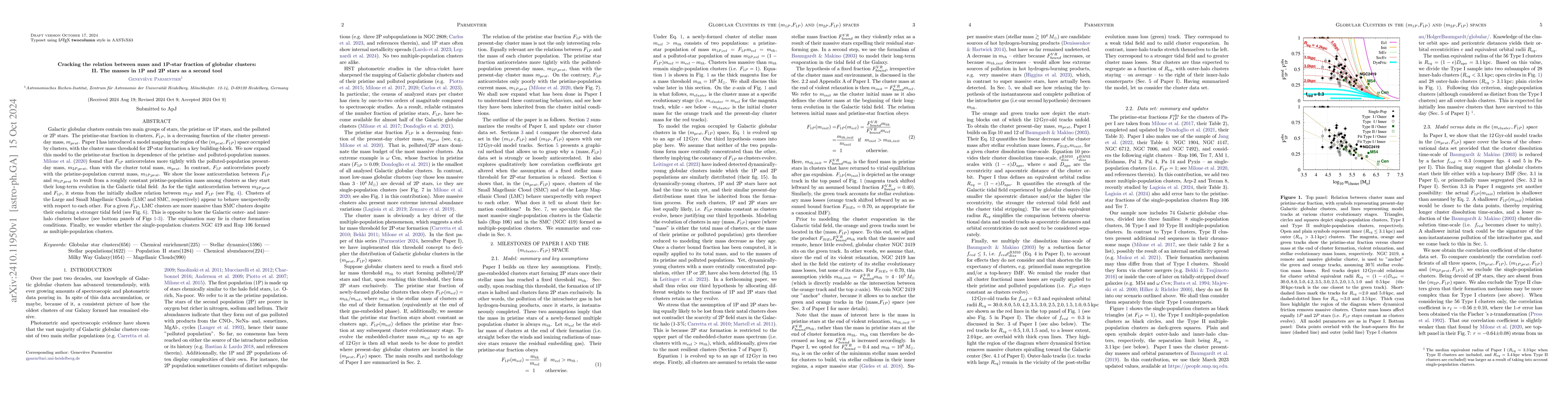 Galactic globular clusters contain two main groups of stars, the pristine or 1P stars, and the polluted or 2P stars. The pristine-star fraction in clusters, $F_{1P}$, is a decreasing function of the cluster present-day mass, $m_{prst}$. Paper~I has introduced a model mapping the region of the $(m_{prst},F_{1P})$ space occupied by clusters, with the cluster mass threshold for 2P-star formation a key building-block. We now expand this model to the pristine-star fraction in dependence of the pristine- and polluted-population masses. Milone et al.(2020) found that $F_{1P}$ anticorrelates more tightly with the polluted-population present-day mass, $m_{2P,prst}$, than with the cluster total mass, $m_{prst}$. In contrast, $F_{1P}$ anticorrelates poorly with the pristine-population current mass, $m_{1P,prst}$. We show the loose anticorrelation between $F_{1P}$ and $m_{1P,prst}$ to result from a roughly constant pristine-population mass among clusters as they start their long-term evolution in the Galactic tidal field. As for the tight anticorrelation between $m_{2P,prst}$ and $F_{1P}$, it stems from the initially shallow relation between $m_{2P}$ and $F_{1P}$ (Fig.4). Clusters of the Large and Small Magellanic Clouds (LMC and SMC, respectively) appear to behave unexpectedly with respect to each other. For a given $F_{1P}$, LMC clusters are more massive than SMC clusters despite their enduring a stronger tidal field (Fig.6). This is opposite to how the Galactic outer- and inner-halo clusters behave (bottom panels of Figs 1-3). The explanation may lie in cluster formation conditions. Finally, we wonder whether the single-population clusters NGC~419 and Rup~106 formed as multiple-populations clusters.