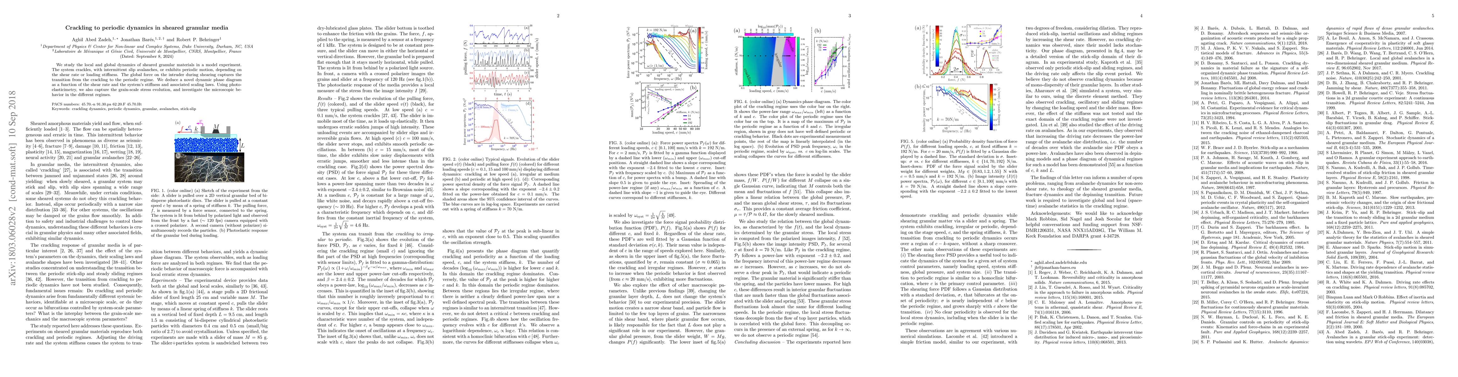 This study explores the dynamics of sheared granular media, revealing transitions from crackling to periodic motion under varying shear rates and loading stiffness. The research identifies a new dynamic phase diagram and uses photo-elasticimetry to analyze grain-scale stress evolution, uncovering microscopic behaviors in different regimes.