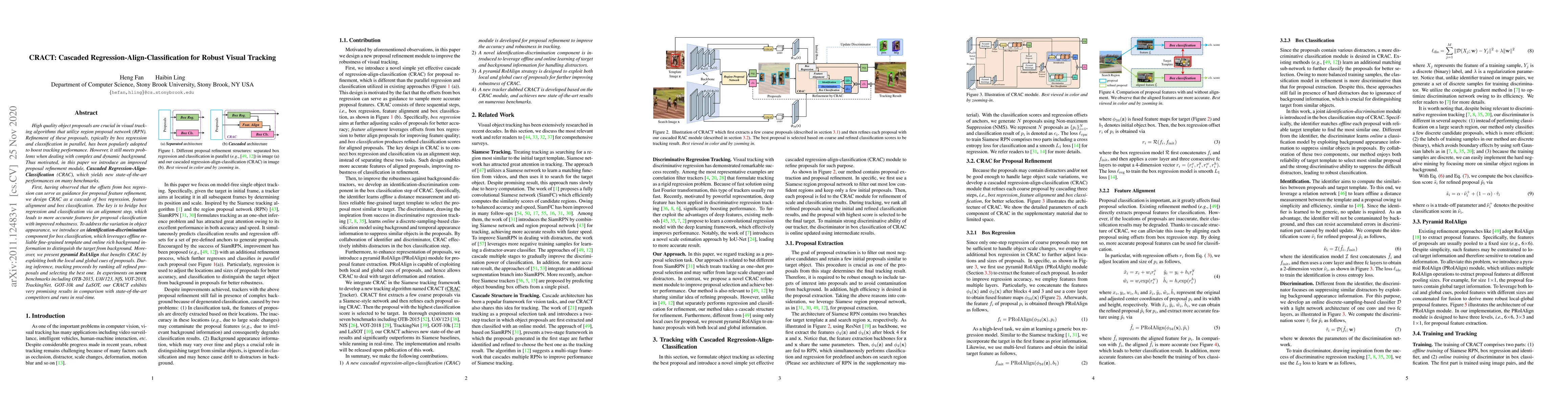 The paper introduces CRACT, a Cascaded Regression-Align-Classification module for robust visual tracking, which refines object proposals through a cascade of regression, feature alignment, and classification. This approach enhances tracking performance by bridging regression and classification via an alignment step, and it leverages both local and global cues for improved robustness.