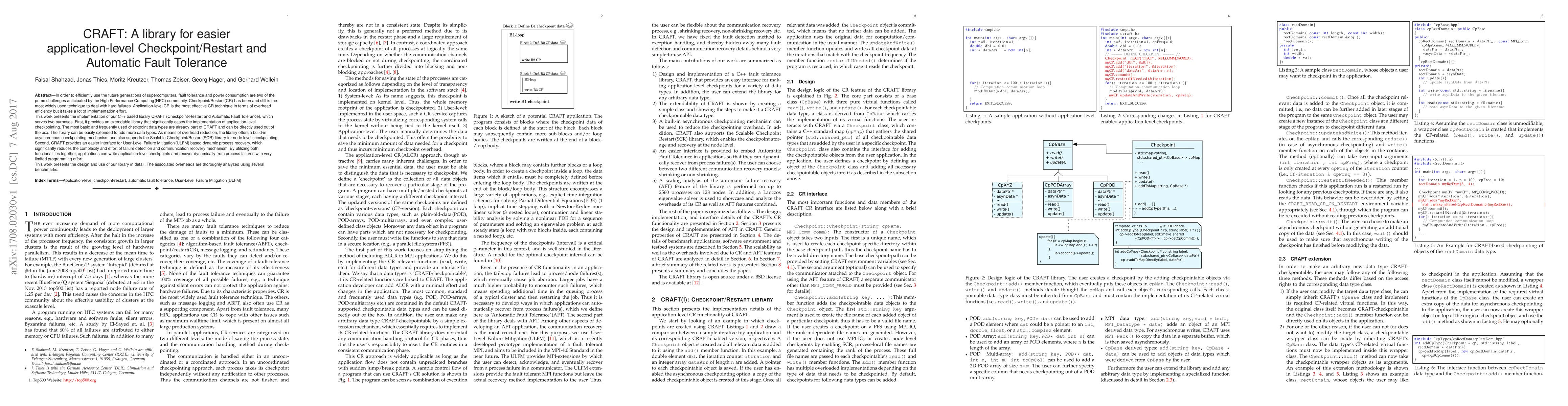 The CRAFT library simplifies application-level checkpoint/restart and automatic fault tolerance in HPC, offering built-in checkpoint data types and asynchronous checkpointing to reduce overhead. It also facilitates User-Level Failure Mitigation for dynamic process recovery, significantly lowering implementation effort and complexity.