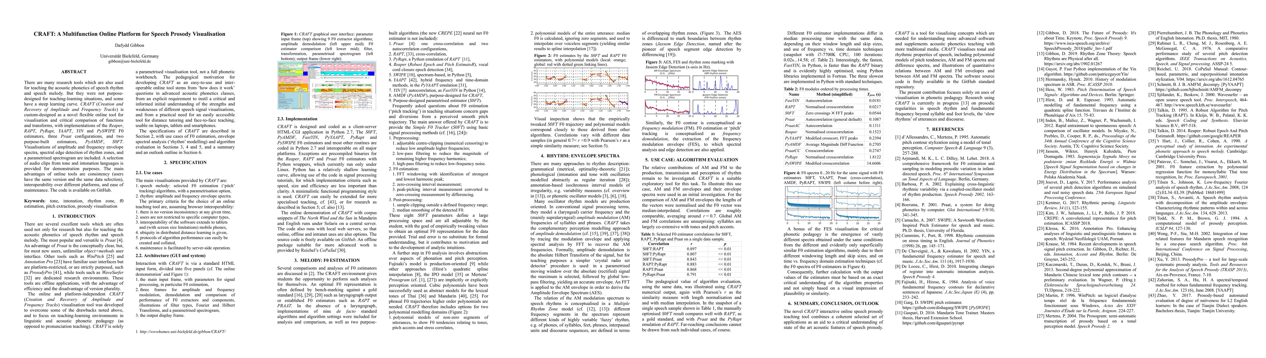 There are many research tools which are also used for teaching the acoustic phonetics of speech rhythm and speech melody. But they were not purpose-designed for teaching-learning situations, and some have a steep learning curve. CRAFT (Creation and Recovery of Amplitude and Frequency Tracks) is custom-designed as a novel flexible online tool for visualisation and critical comparison of functions and transforms, with implementations of the Reaper, RAPT, PyRapt, YAAPT, YIN and PySWIPE F0 estimators, three Praat configurations, and two purpose-built estimators, PyAMDF, S0FT. Visualisations of amplitude and frequency envelope spectra, spectral edge detection of rhythm zones, and a parametrised spectrogram are included. A selection of audio clips from tone and intonation languages is provided for demonstration purposes. The main advantages of online tools are consistency (users have the same version and the same data selection), interoperability over different platforms, and ease of maintenance. The code is available on GitHub.